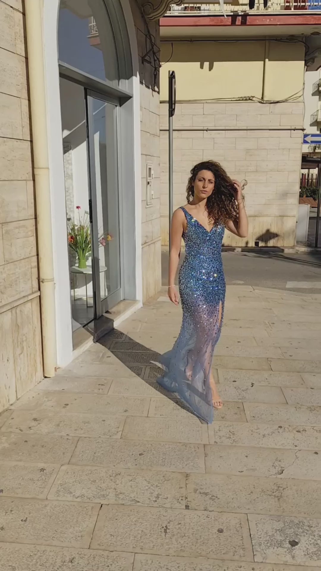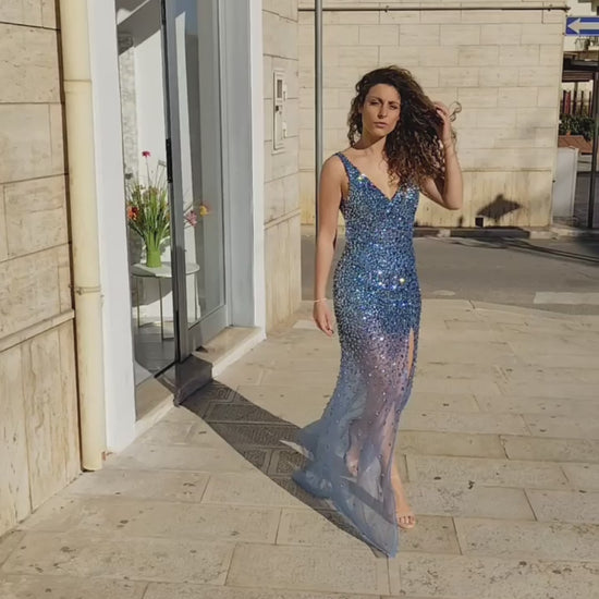 BIANCA BRANDI Abito da Cerimonia Ricoperto di Swaroski Color Niagara