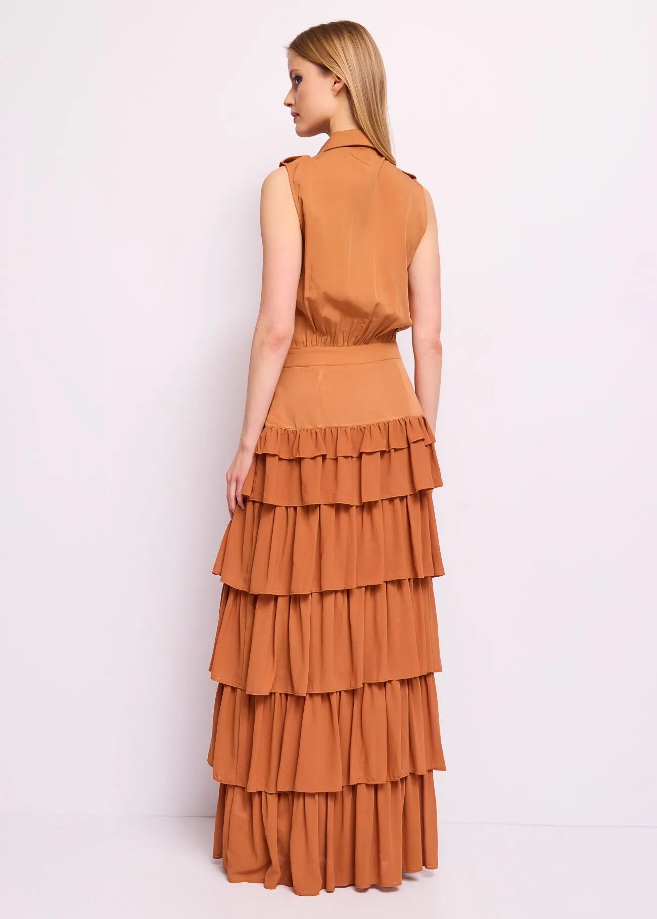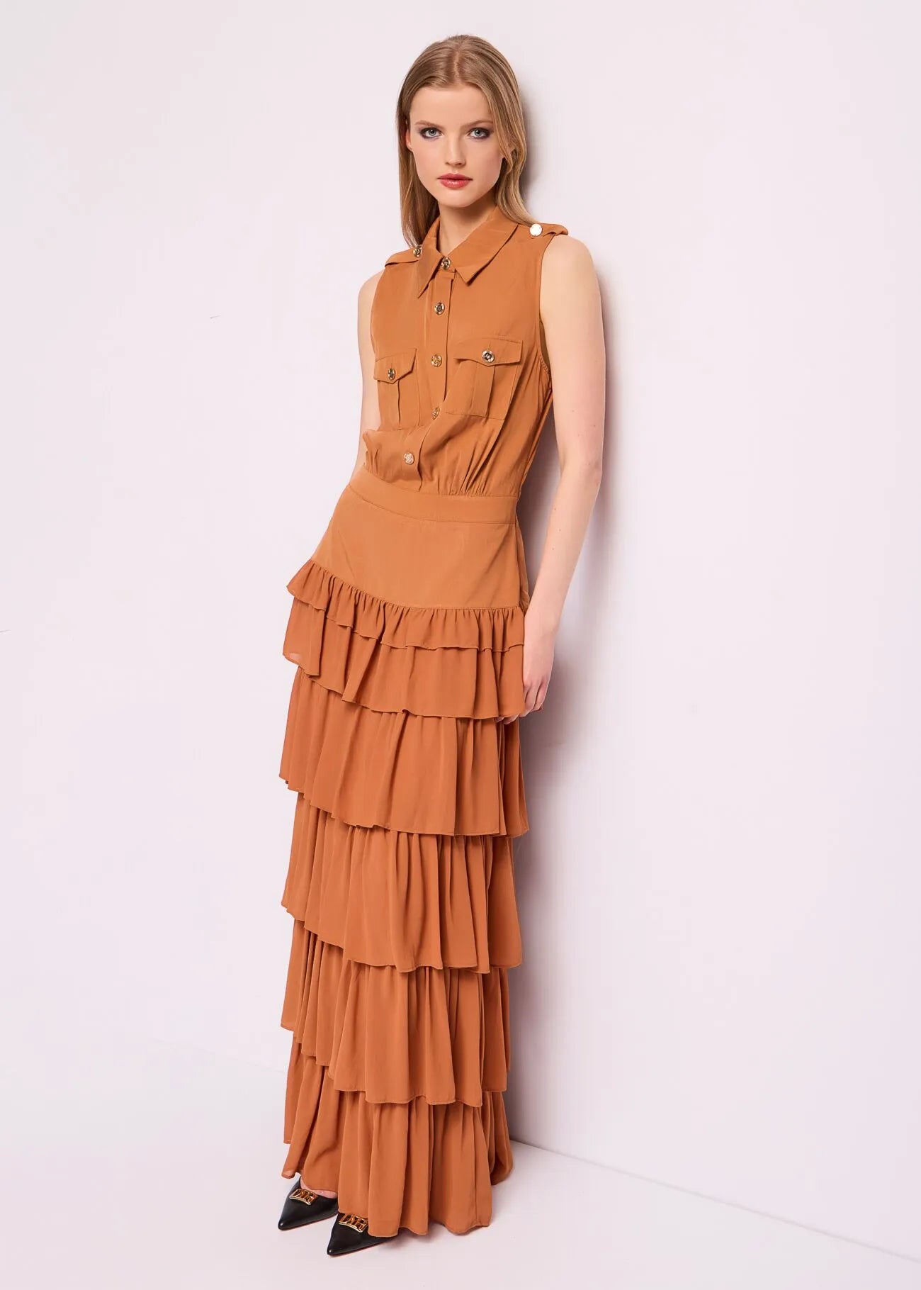 DENNY ROSE Abito Lungo in Lyocell con Balze