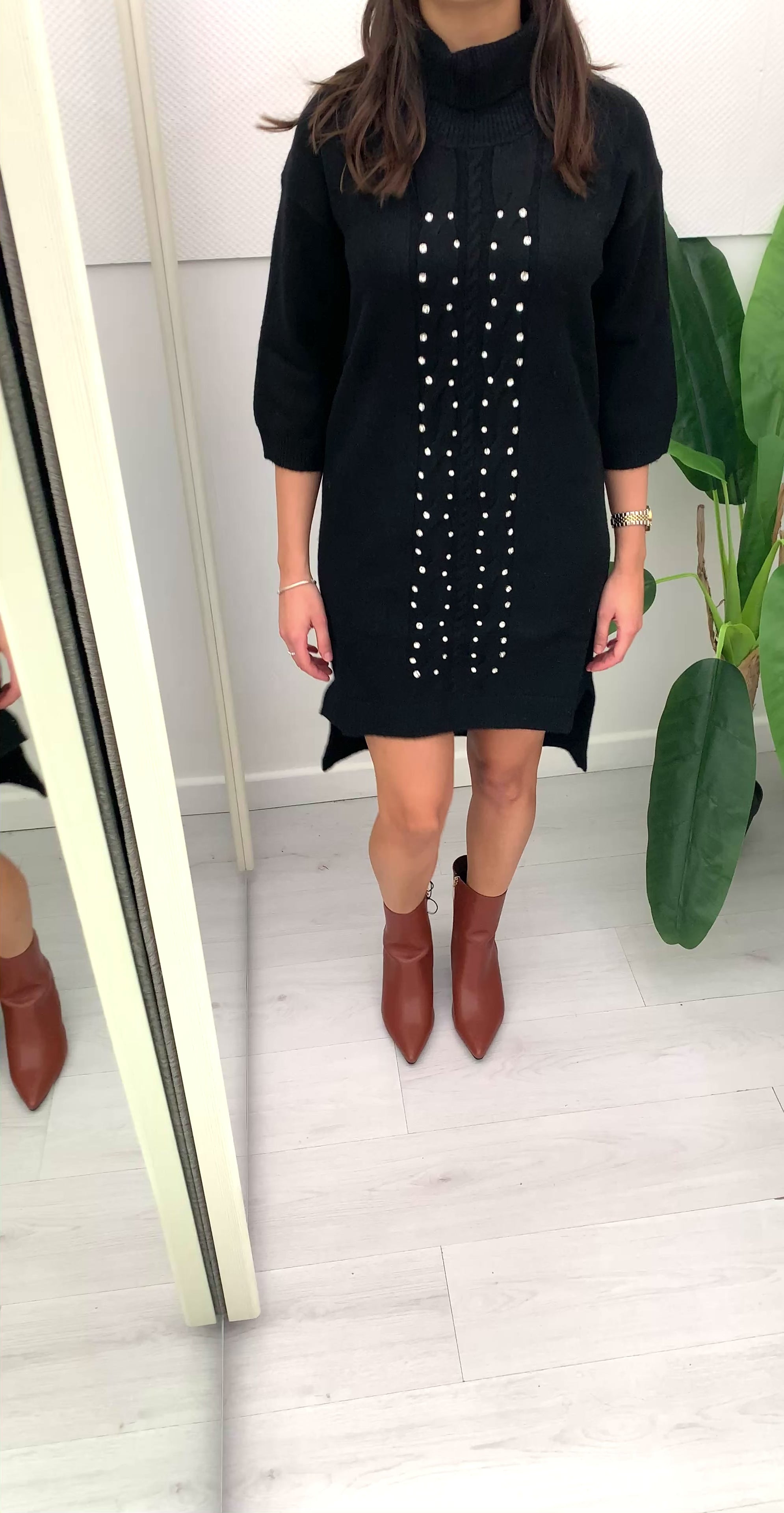 Abito a sacchetto in lana di alta qualità, caratterizzato da un design dritto e moderno arricchito da borchiette sottili che ne esaltano l’eleganza discreta. Gli spacchetti laterali garantiscono comfort e libertà di movimento, rendendolo perfetto per un look sofisticato e contemporaneo.