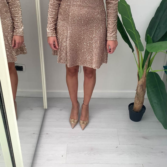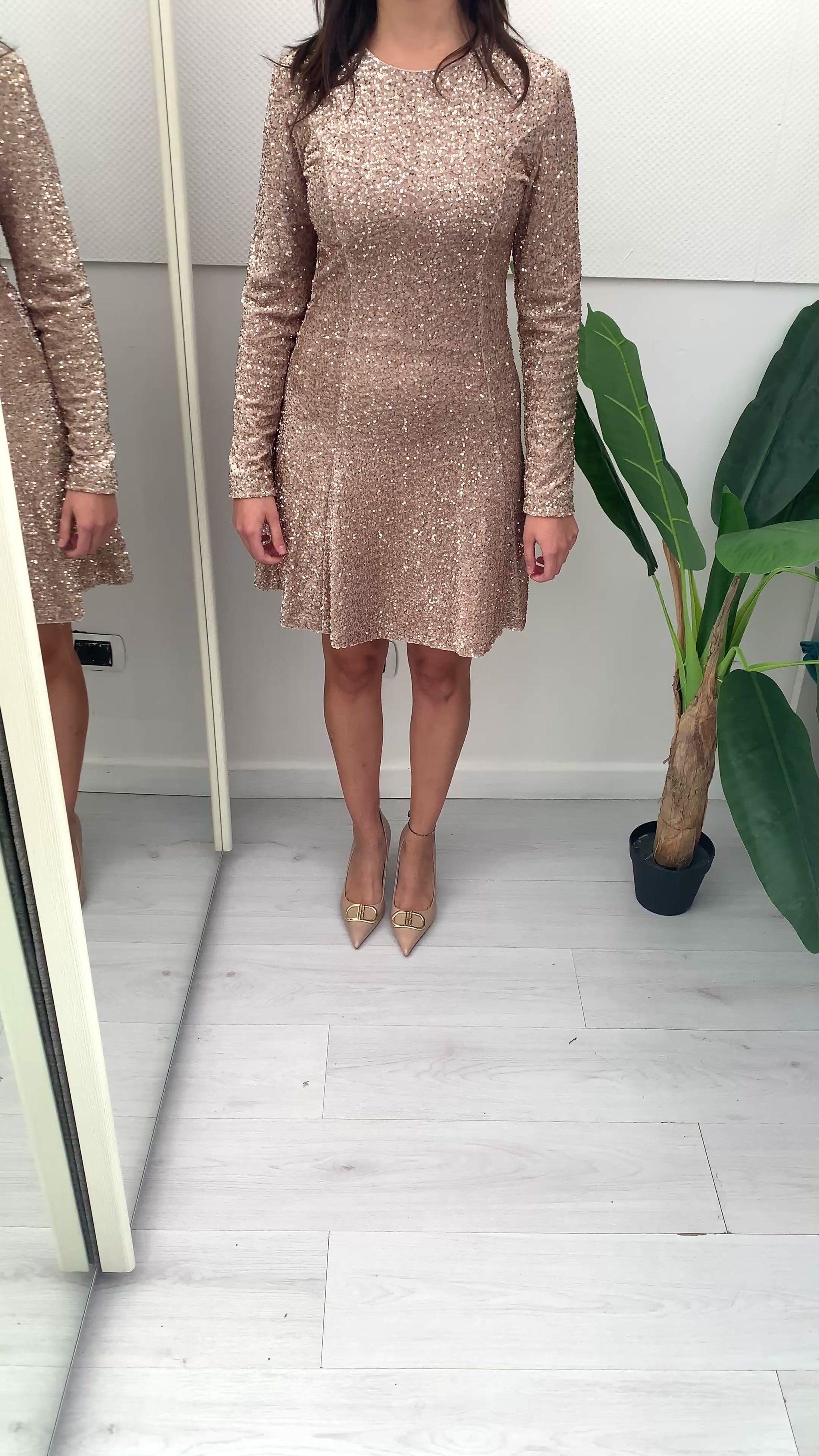 Questo abito EDAS "Pioggia" in ciniglia morbida unisce eleganza e comfort grazie al tessuto elastico e alla vestibilità avvolgente. La raffinata decorazione con paillettes dona luminosità, mentre le maniche lunghe completano un look sofisticato ideale per una serata speciale. Scegli questo modello per distinguerti con stile e raffinatezza.