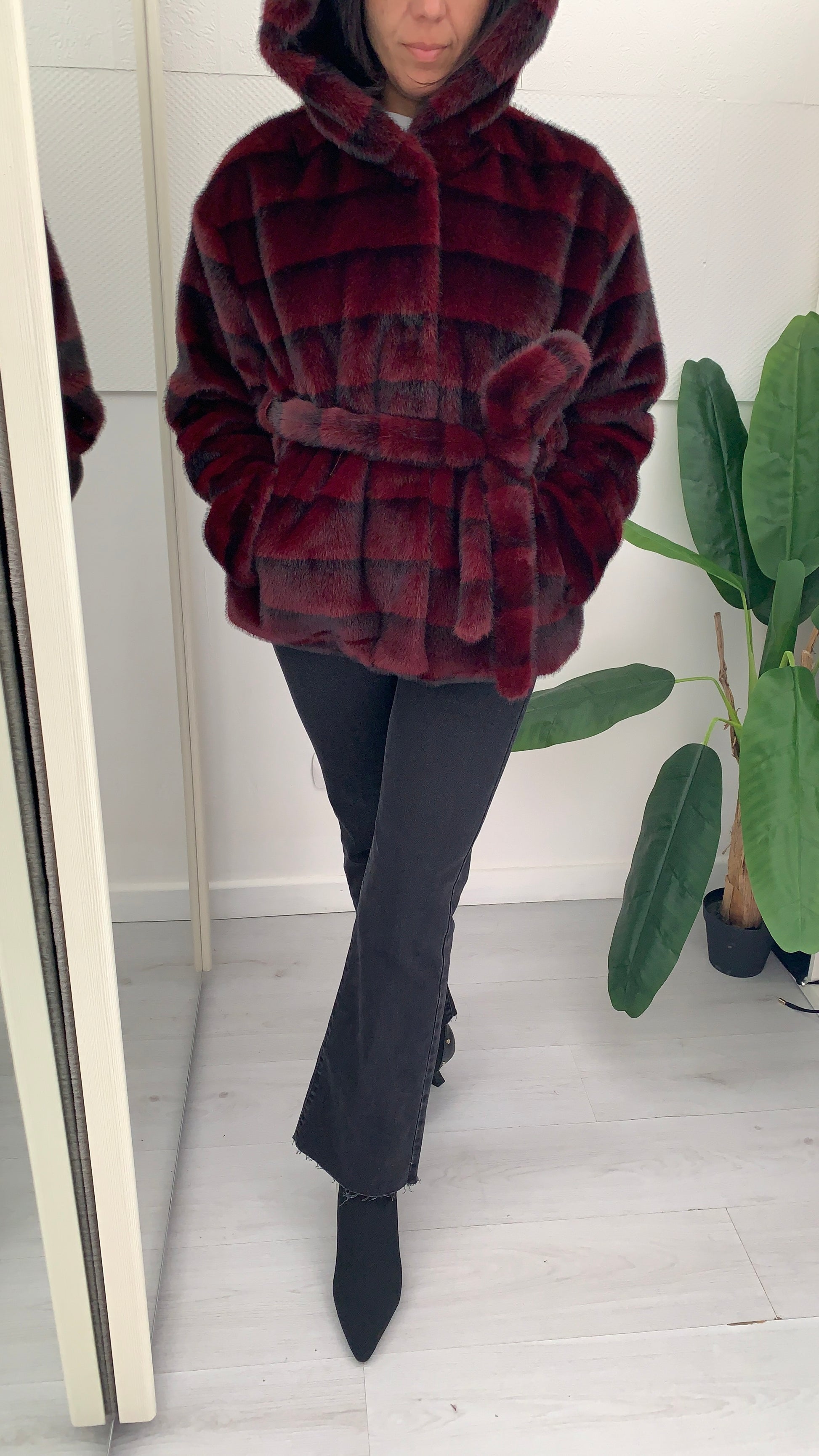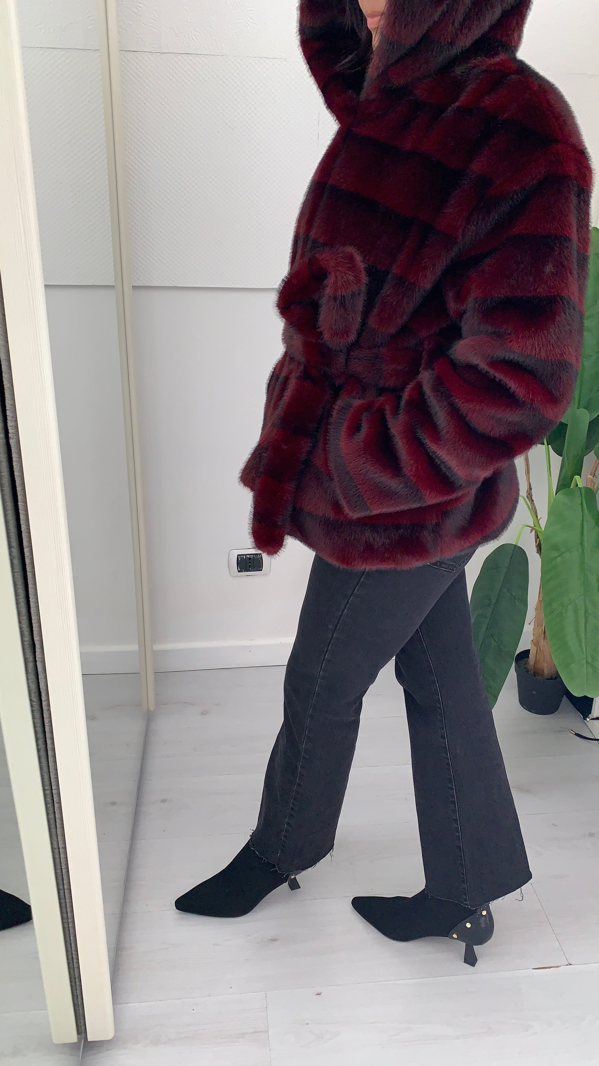 EDAS Ecopelliccia Eliseo Zebrata Bordeaux e Nera con Cintura