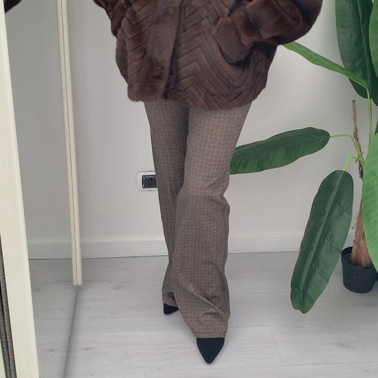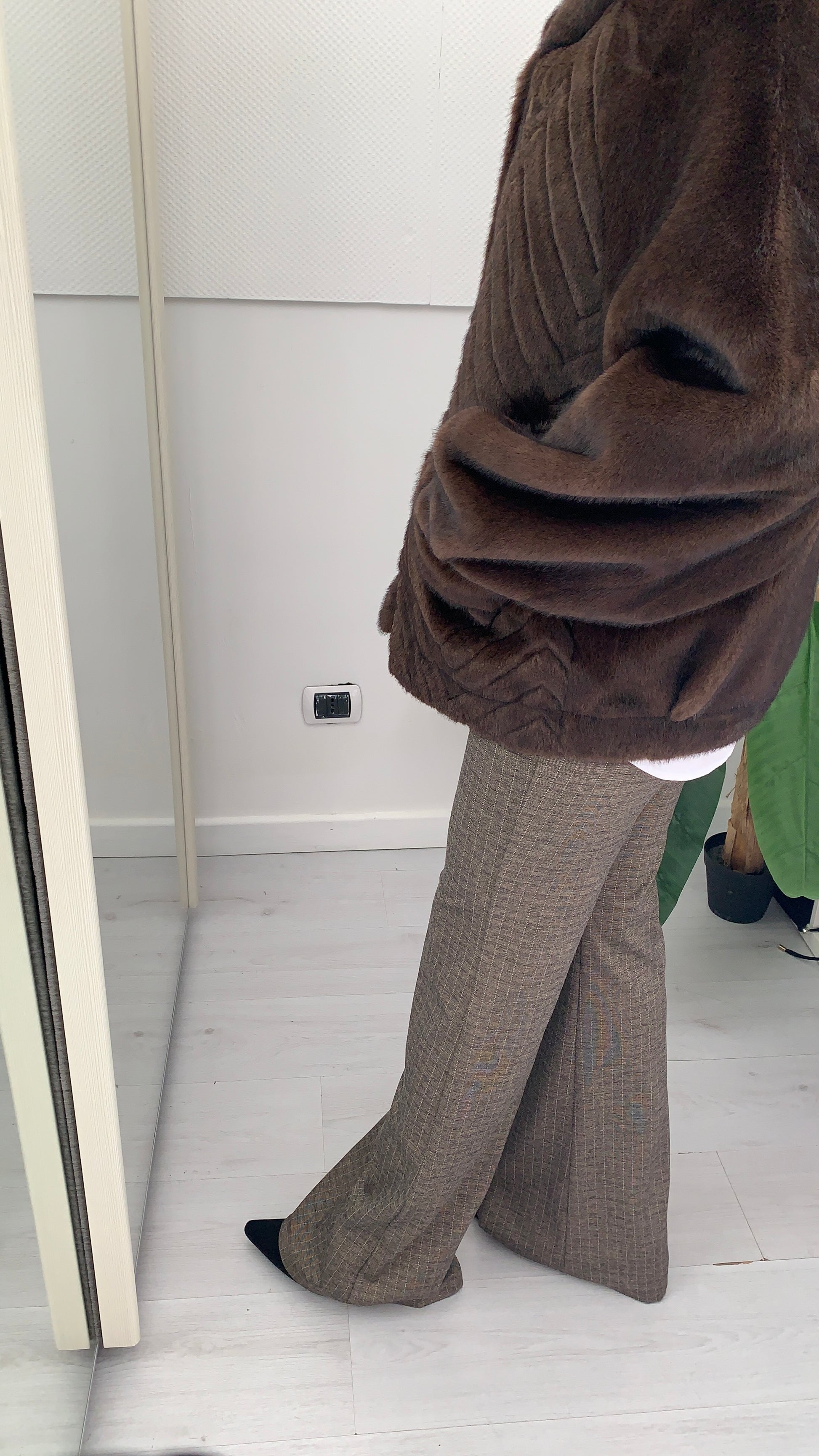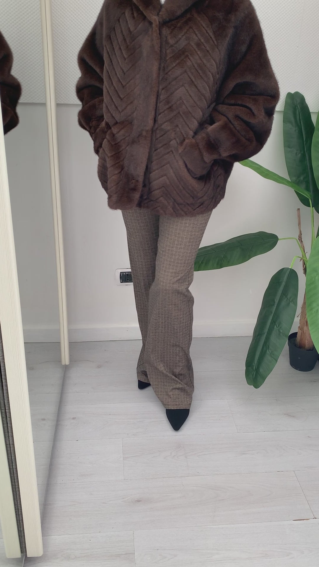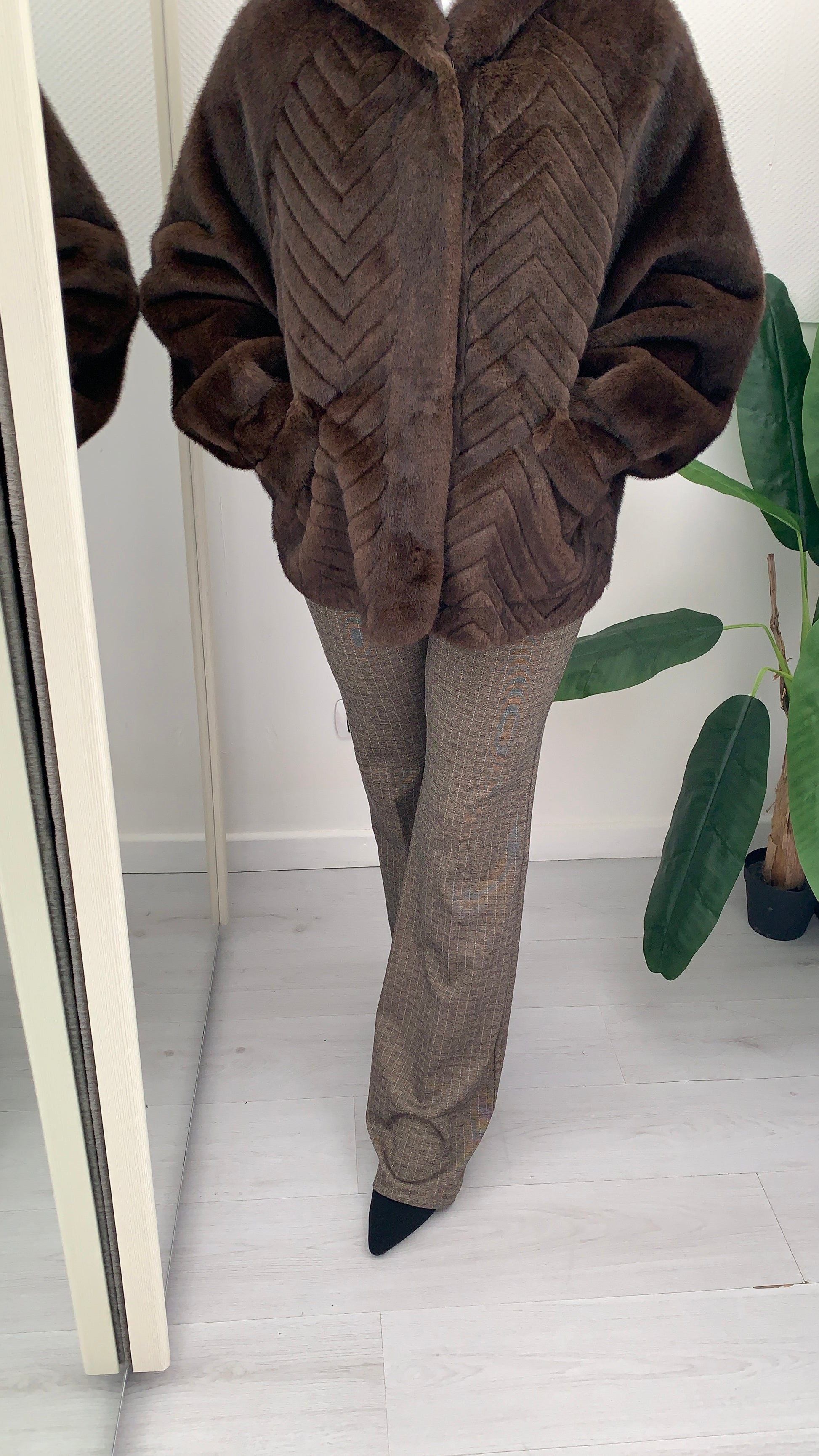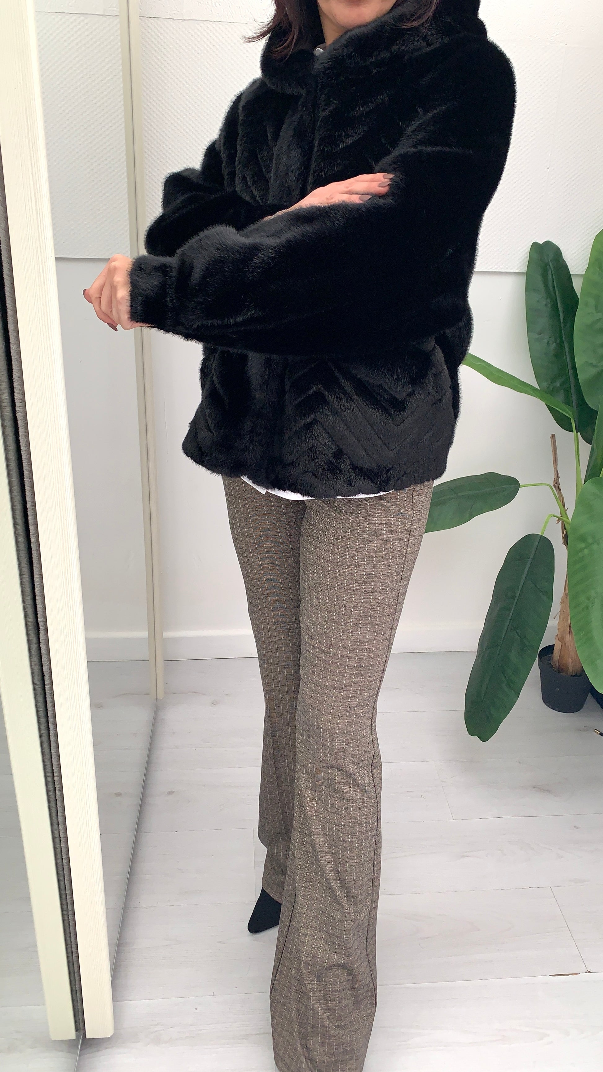 Un capo must-have per la stagione fredda: il bomber in ecopelliccia effetto Chevronne con lavorazione scannellata combina morbidezza e carattere in perfetto equilibrio