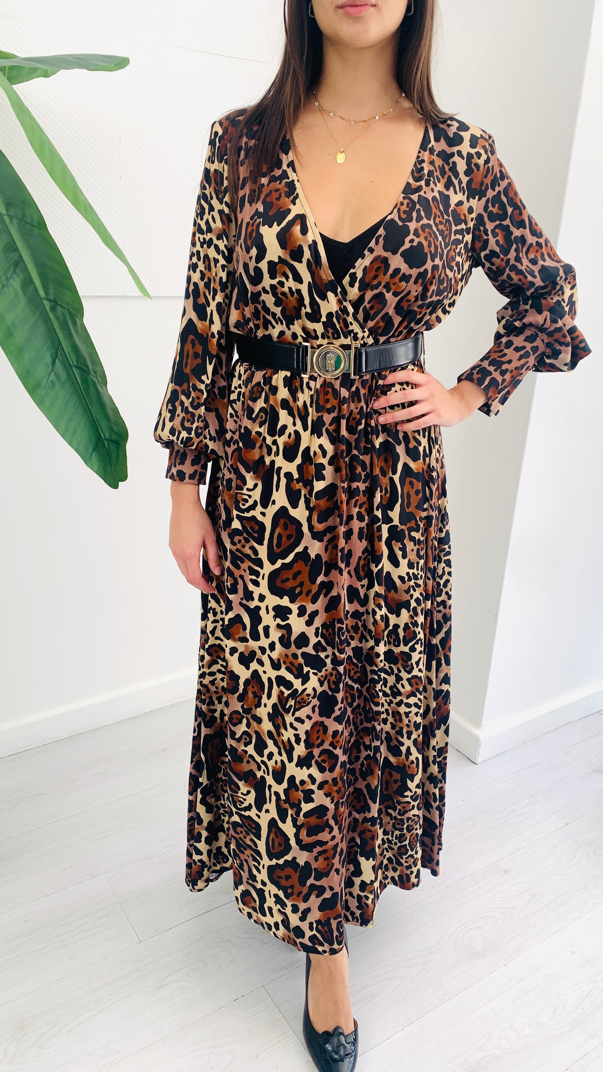 Questo abito lungo FRACOMINA unisce eleganza e comfort grazie al suo tessuto morbido e leggero, arricchito da una stampa animalier raffinata. Ideale per chi cerca un capo versatile e sofisticato, garantisce una vestibilità fluida che valorizza la silhouette senza rinunciare alla praticità. Perfetto per le giornate più calde o per un look di classe casual-chic.