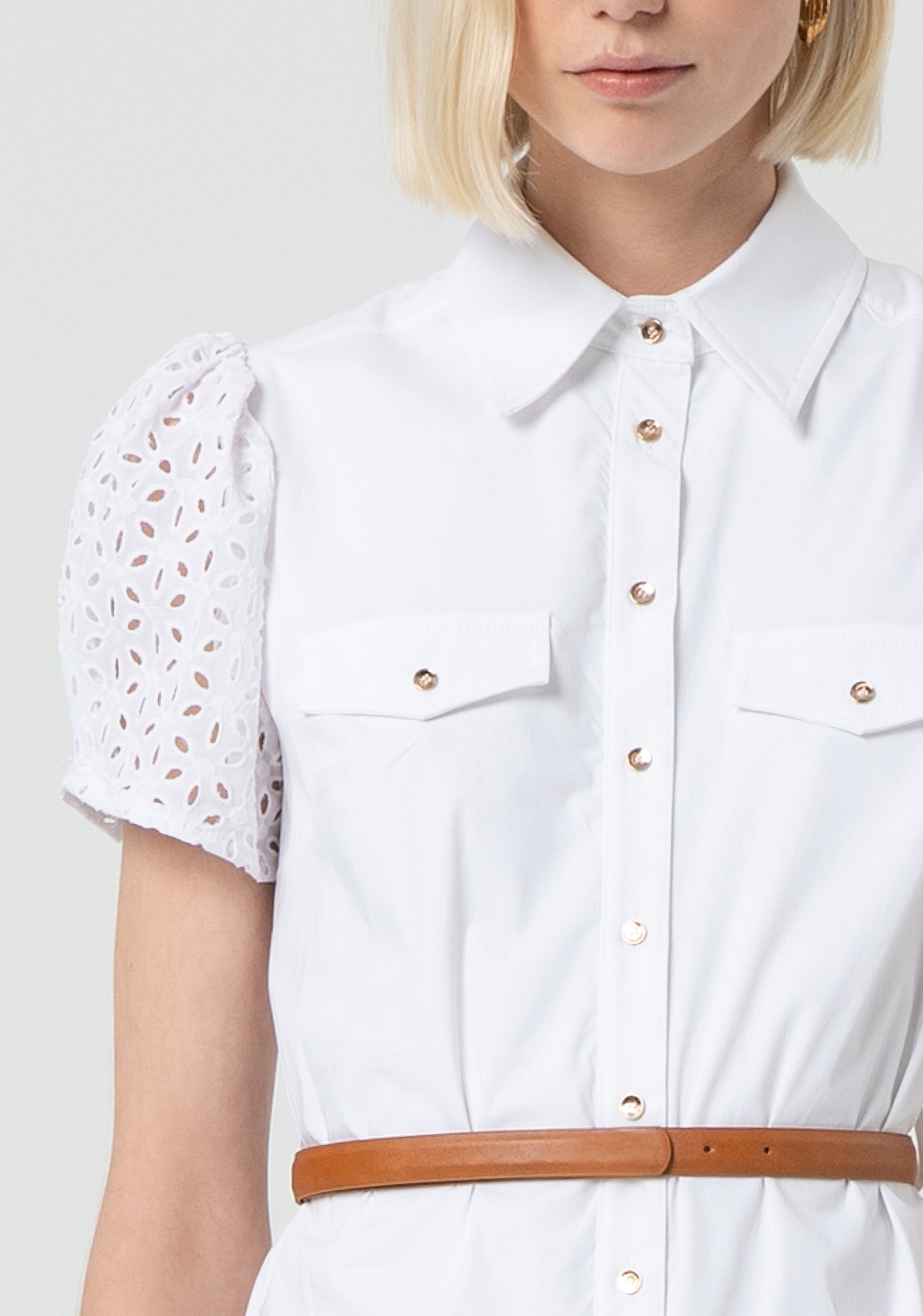 FRACOMINA Chermisir con Maniche in Macramè e Cinta in Cuoio