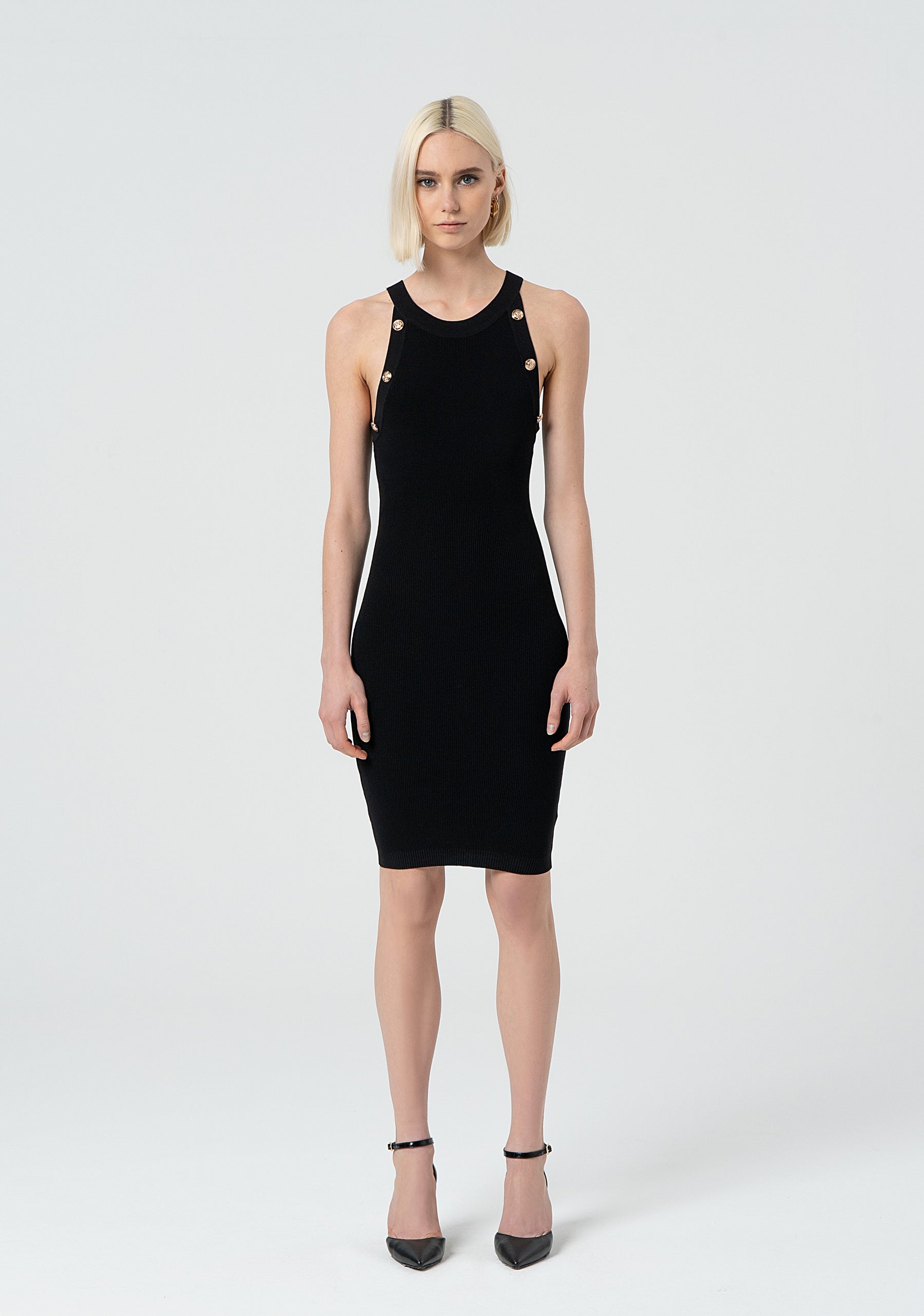 Scatenati con questo adorabile mini abito FRACOMINA! Lo scollo all'americana mette in risalto le tue spalle con un tocco di chic, mentre i bottoni in stile Versace aggiungono quel pizzico di glamour irresistibile. Realizzato in viscosa morbidissima che accarezza la pelle come una carezza.