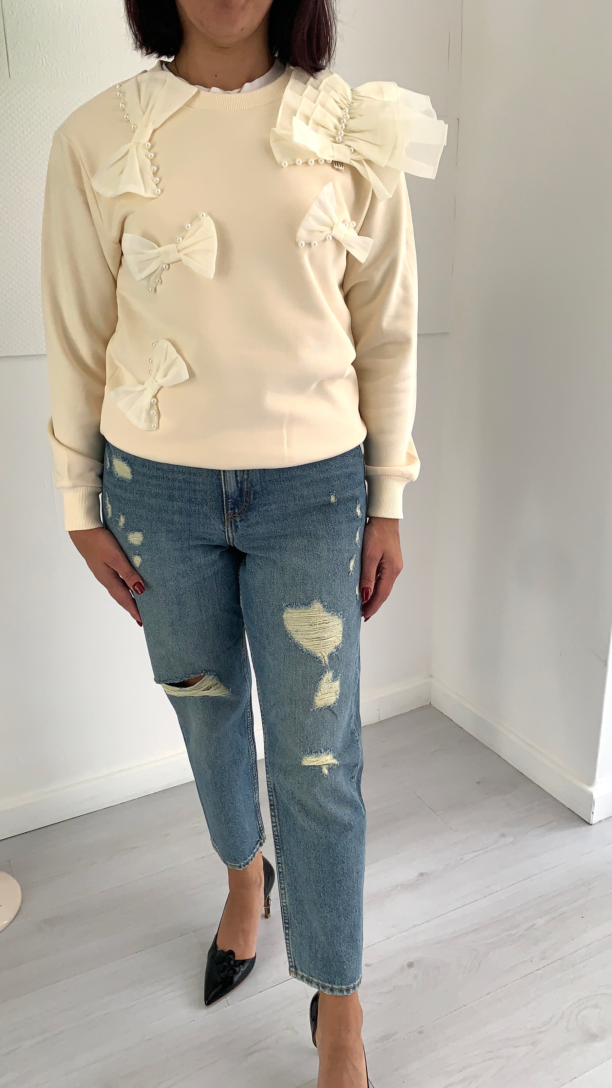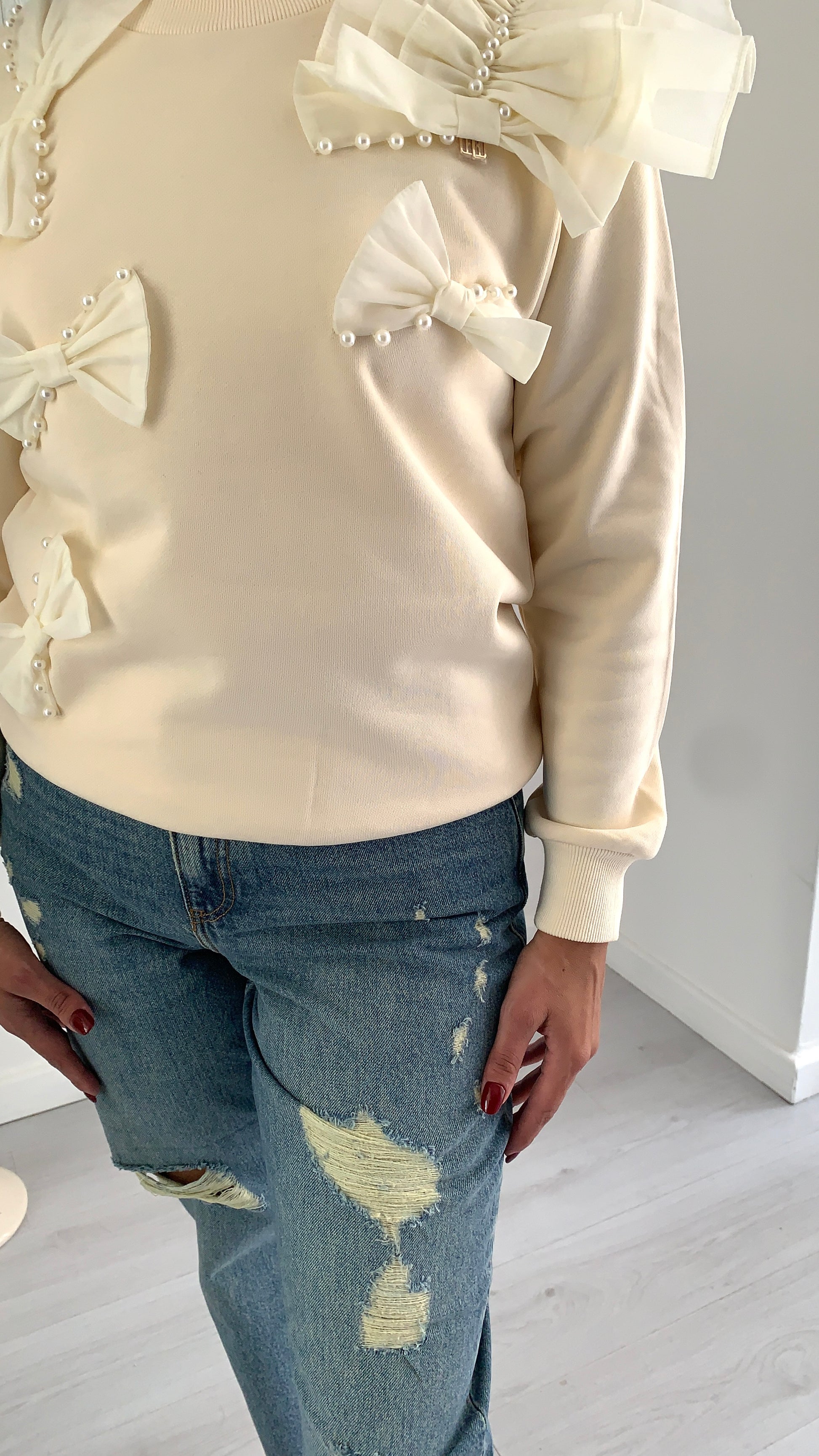FRACOMINA Felpa Vanilla con Fiocchi e Perle