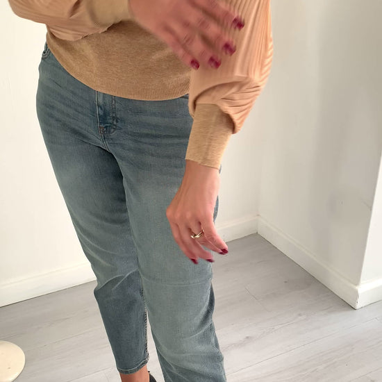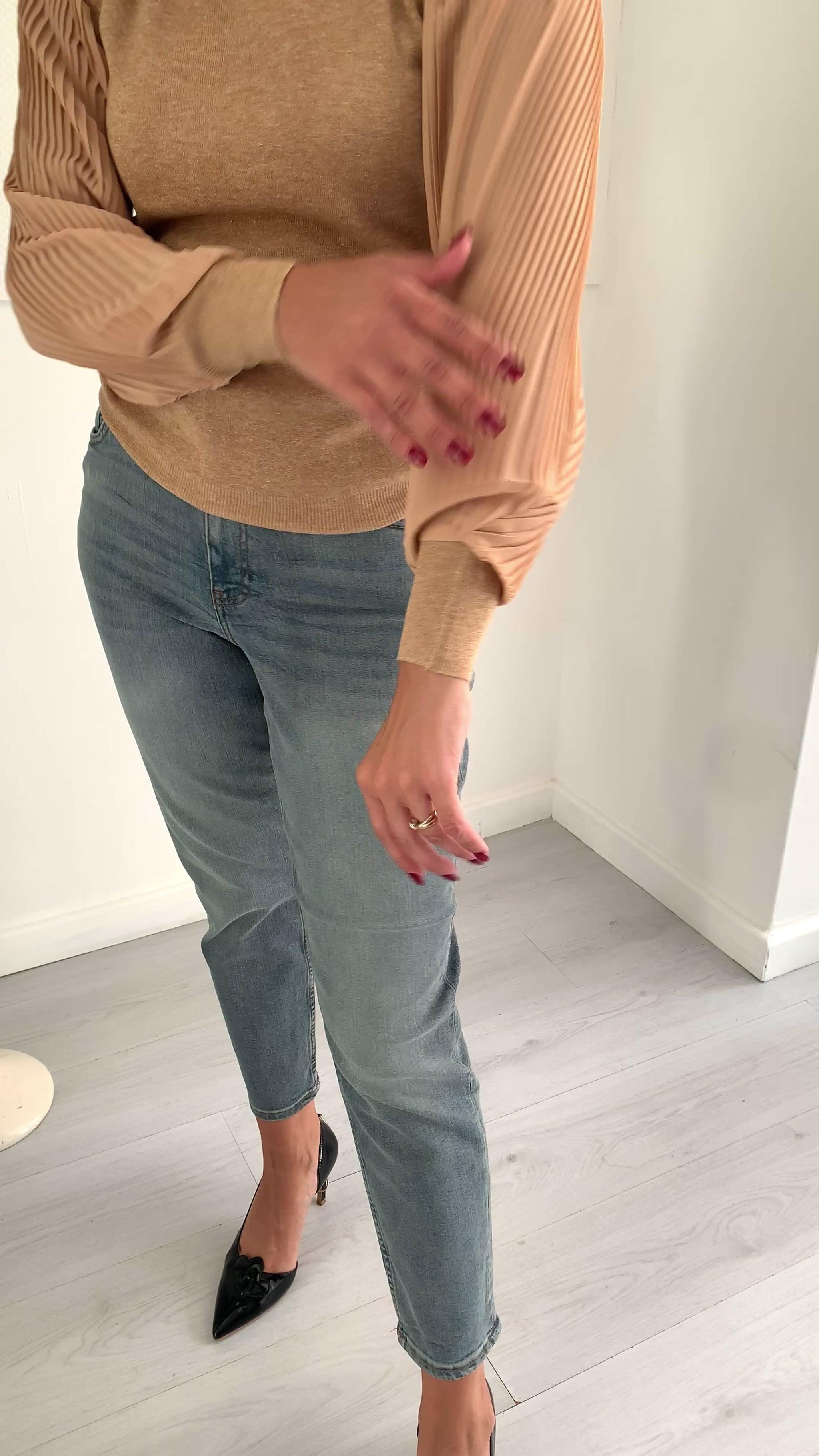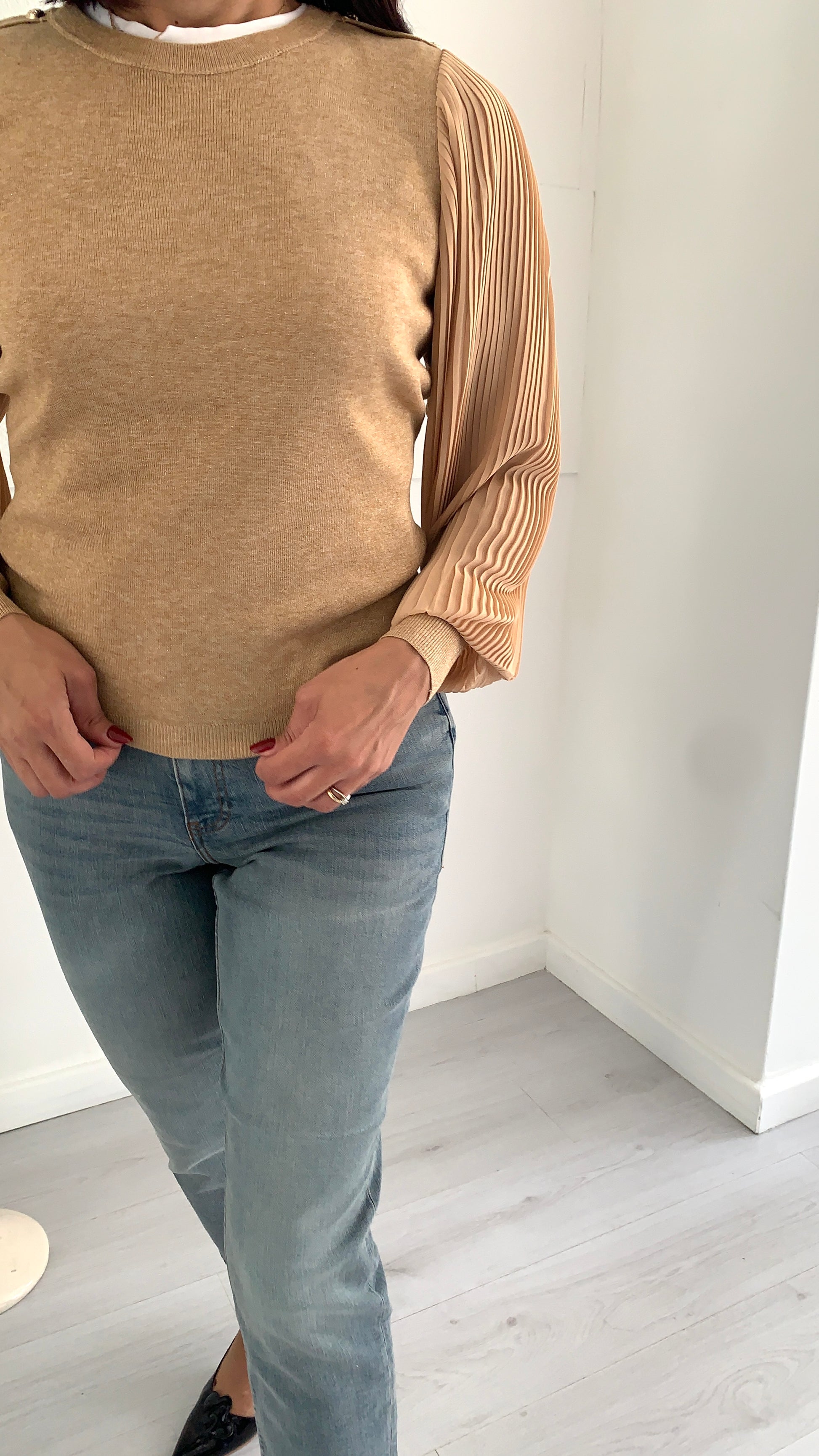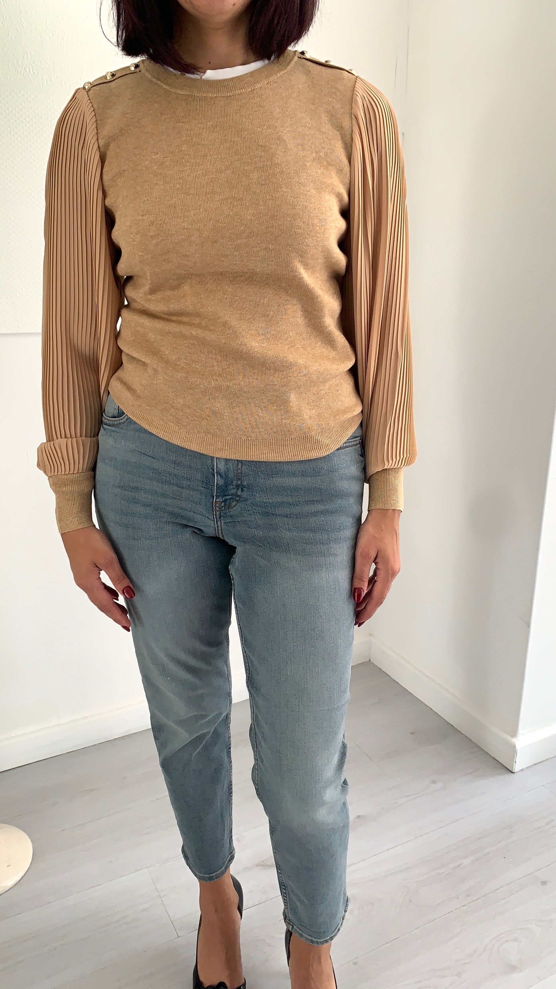 Maglia elegante FRACOMINA con manica plissè color biscotto, perfetta per un look raffinato e moderno. Il dettaglio plissè aggiunge un tocco sofisticato, garantendo comfort e stile in ogni occasione.