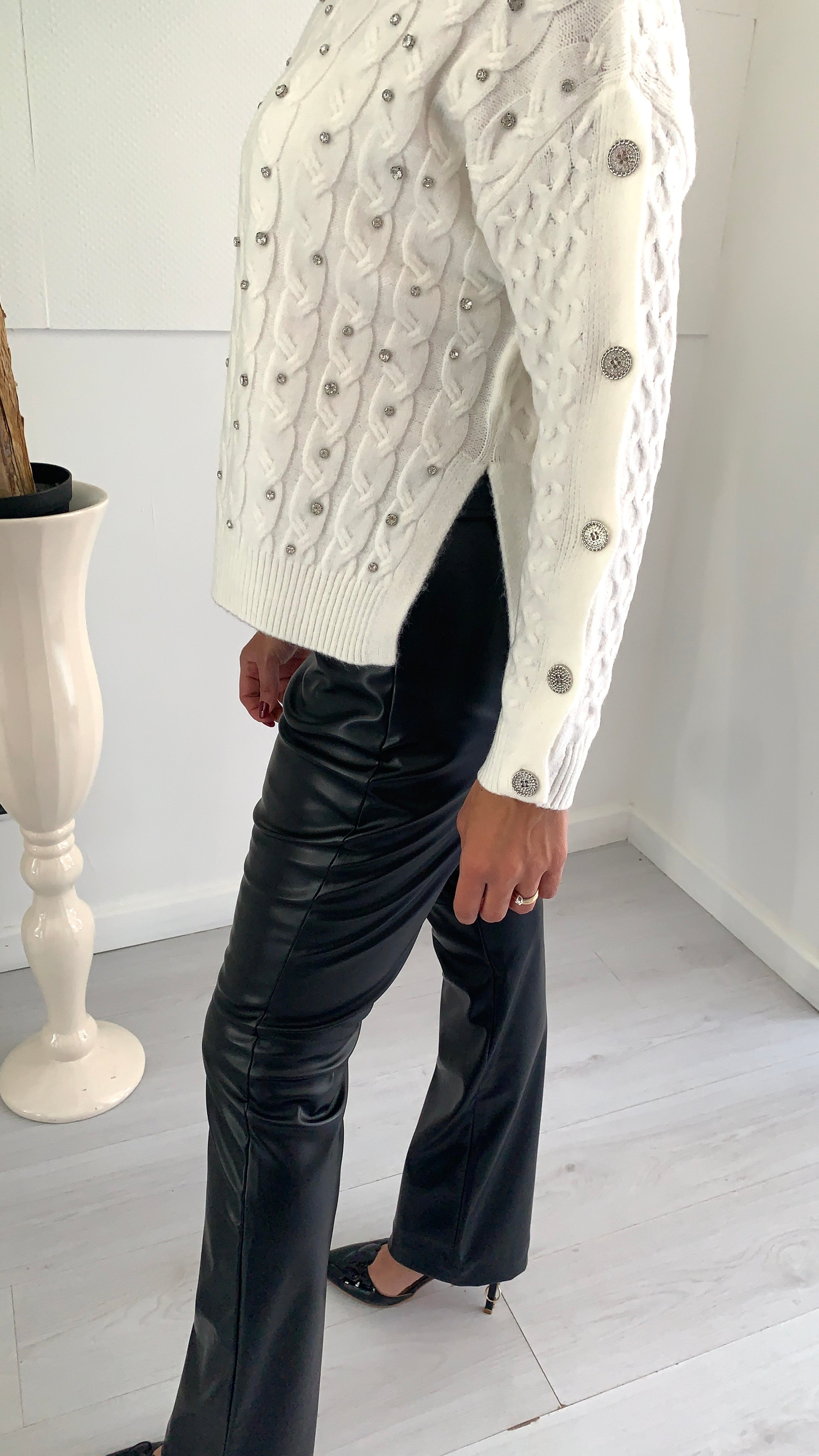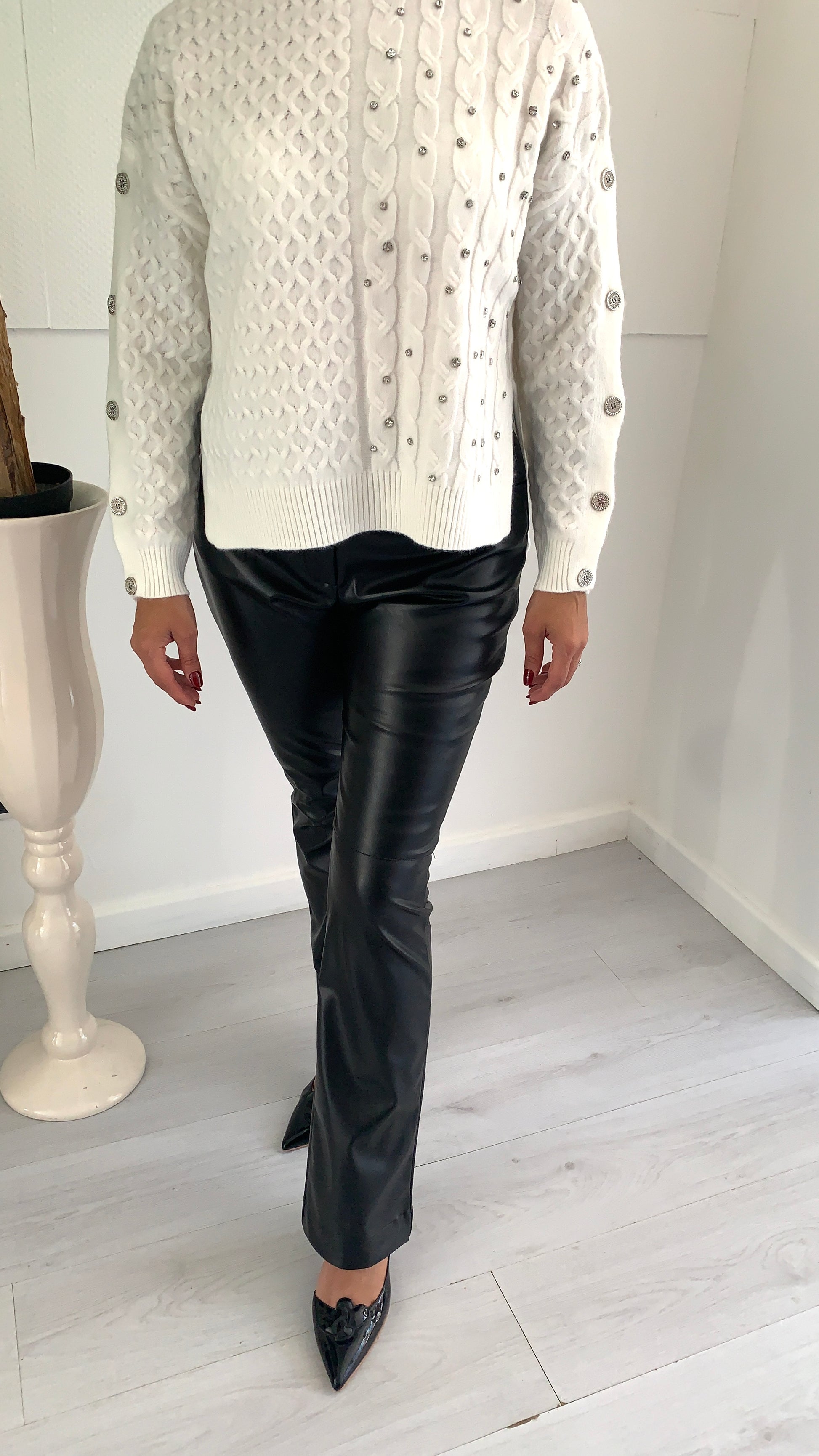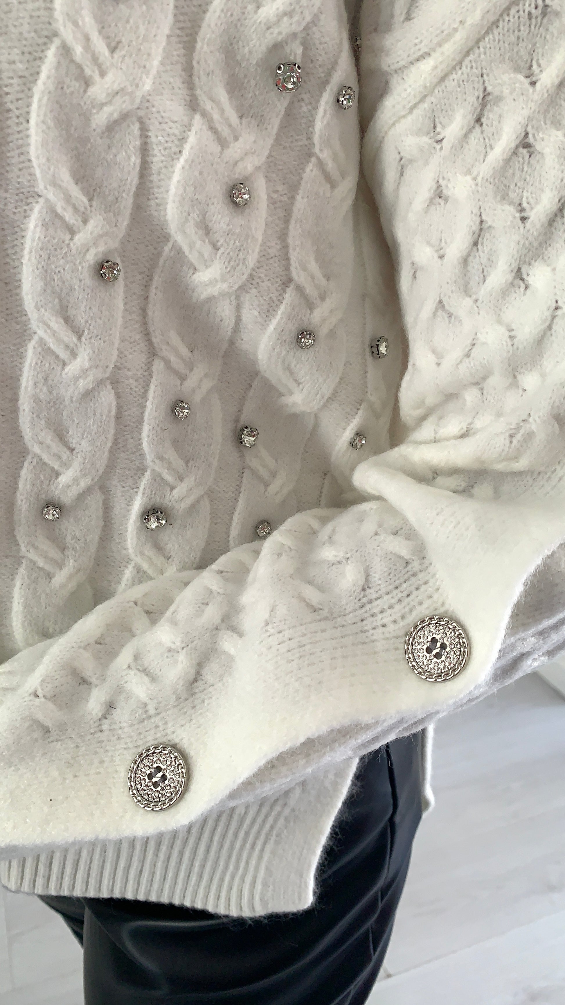 Questo maglione FRACOMINA in tonalità cream unisce eleganza e comfort grazie al suo filato morbidissimo e alla lavorazione intrecciata con punti luce discreti. La vestibilità ampia lo rende ideale per un look rilassato senza rinunciare a un tocco raffinato, perfetto per chi cerca un capo versatile e sofisticato.