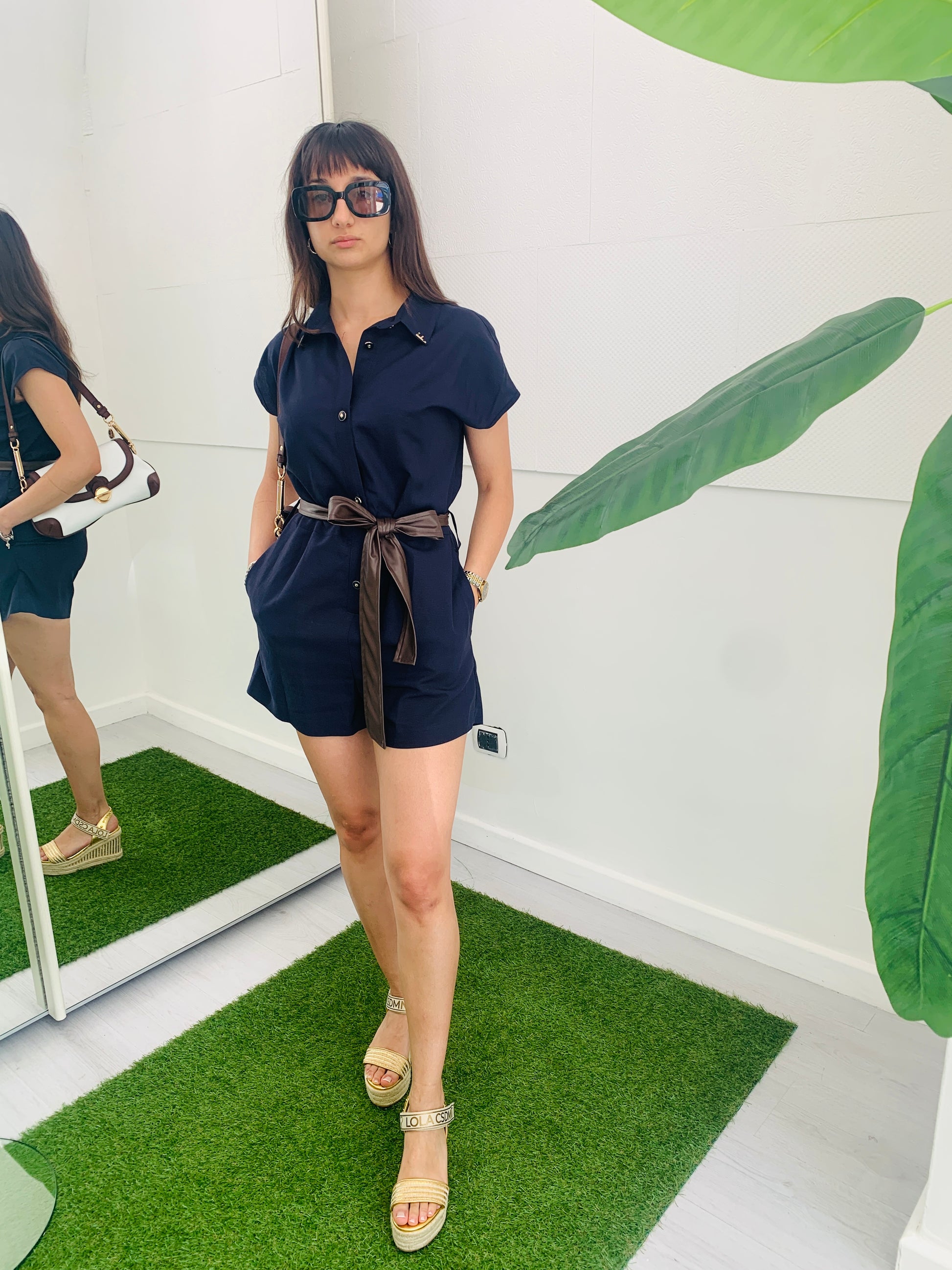 Questa tutina FRACOMINA, realizzata in lino e viscosa, unisce leggerezza e comfort per un look sofisticato e fresco. La cintura in cuoio aggiunge un tocco di eleganza e definisce la silhouette, rendendola ideale per occasioni formali o casual chic. Perfetta per chi cerca stile e praticità in un unico capo.
