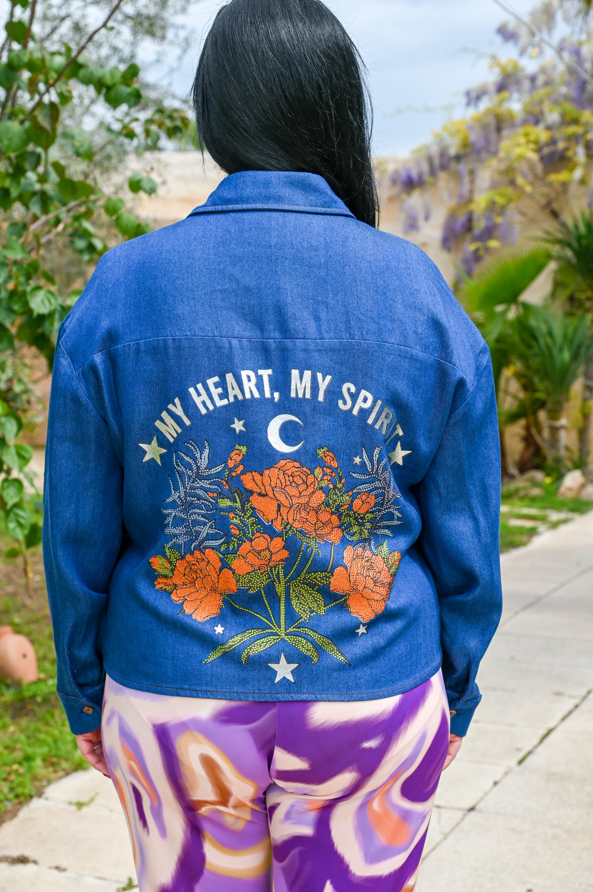 Aggiungi un tocco di stile unico con questa giacca denim leggera e morbida. Le preziose applicazioni sulla schiena la rendono perfetta per completare i tuoi look, sia quelli semplici che quelli più ricercati. Scopri il comfort e l'eleganza di questa giacca camicia in denim con applicazioni.