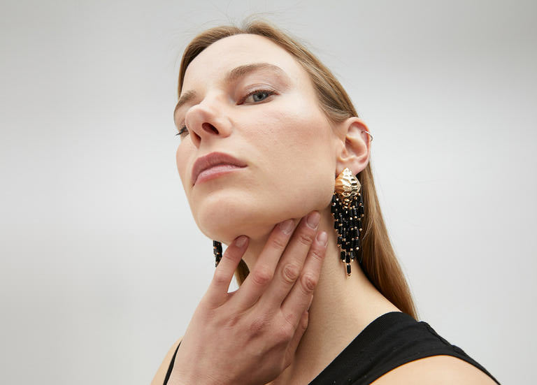 Questi affascinanti orecchini LOLA CASADEMUNT sono un vero spettacolo di stile! Realizzati in metallo senza nichel, combinano praticità e bellezza con il loro design a clip e foro. La cascata di perline danzanti cattura la luce ad ogni movimento, aggiungendo un tocco di magia al tuo look. Perfetti per chi ama brillare con un accessorio che non passa inosservato!
