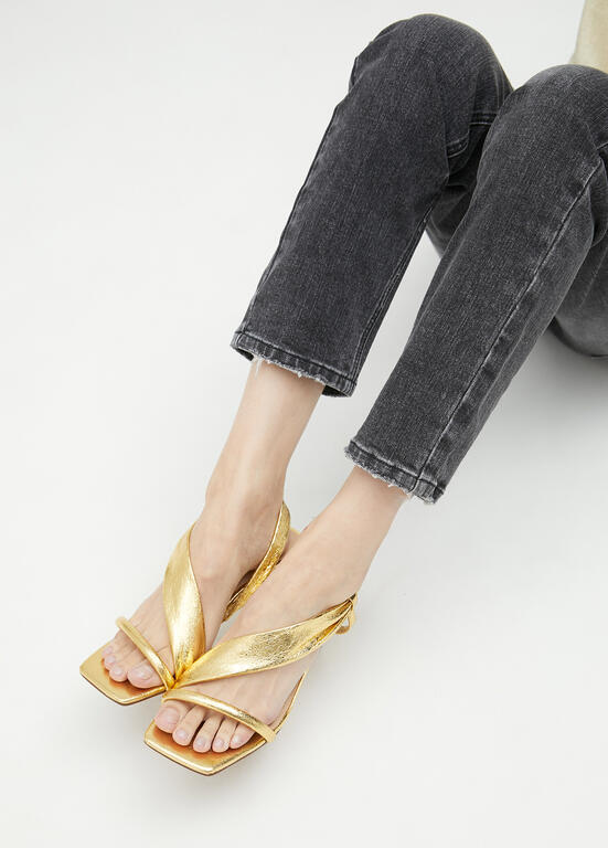 Diventa un'icona di stile con i sandali Lola Casademunt! Le fascette metallizzate dorate e la soletta interna in memory ti garantiranno comfort e una brillantezza unica. Scoprili ora!