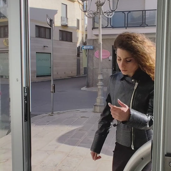 MARCIANO Chiodo in Vera Pelle con Zip e Bottoni Oro