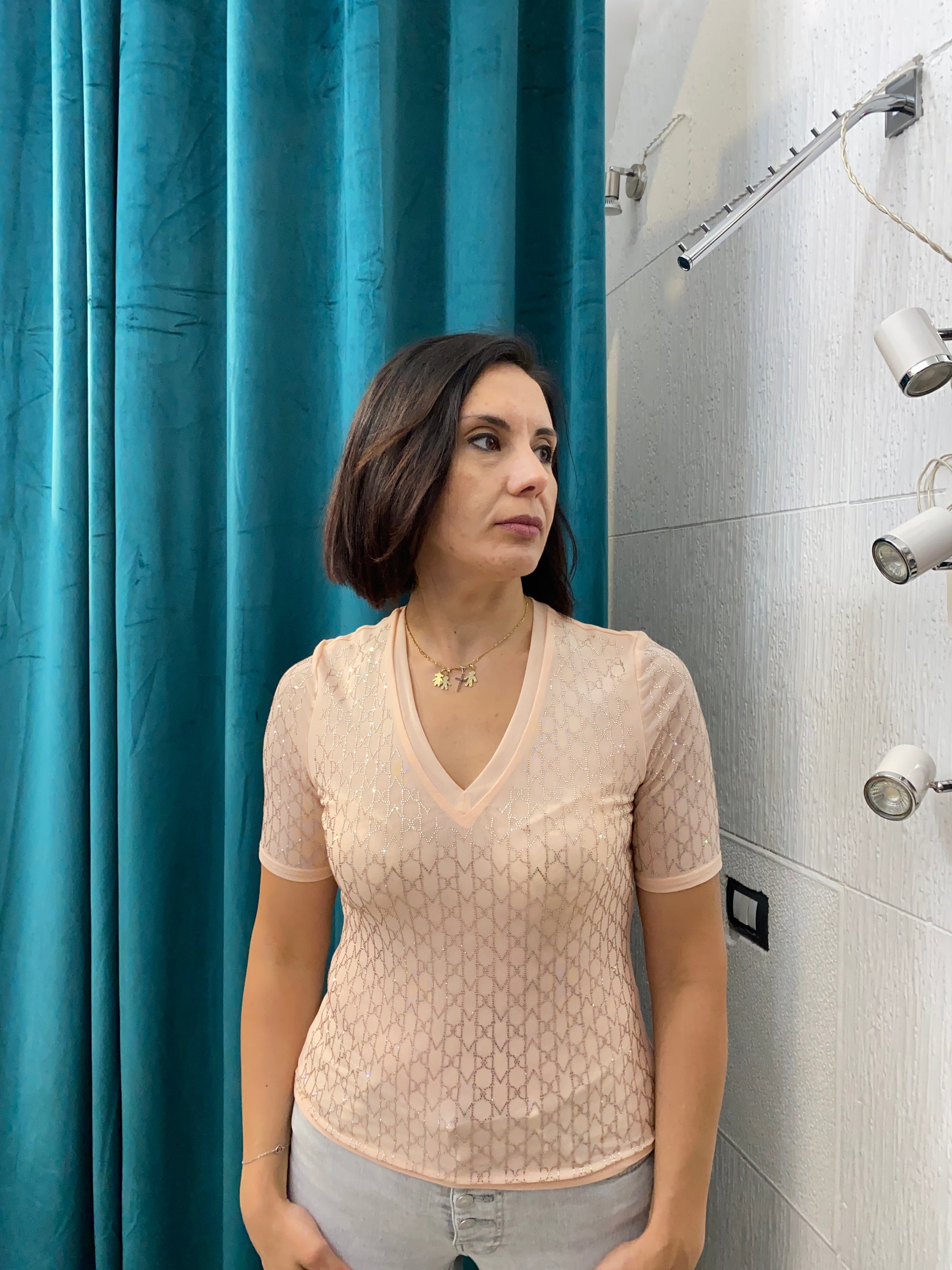 Scopri la MARCIANO T-shirt Luminosa, un capo unico che unisce stile e comfort. Realizzata in tessuto morbidissimo e leggerissimo, questa t-shirt a rete è tempestata di punti luce logati che donano un tocco di brillantezza discreta. La sua elasticità stretch garantisce una vestibilità perfetta e una libertà di movimento senza pari. Perfetta per chi cerca un look sofisticato senza rinunciare al comfort quotidiano.