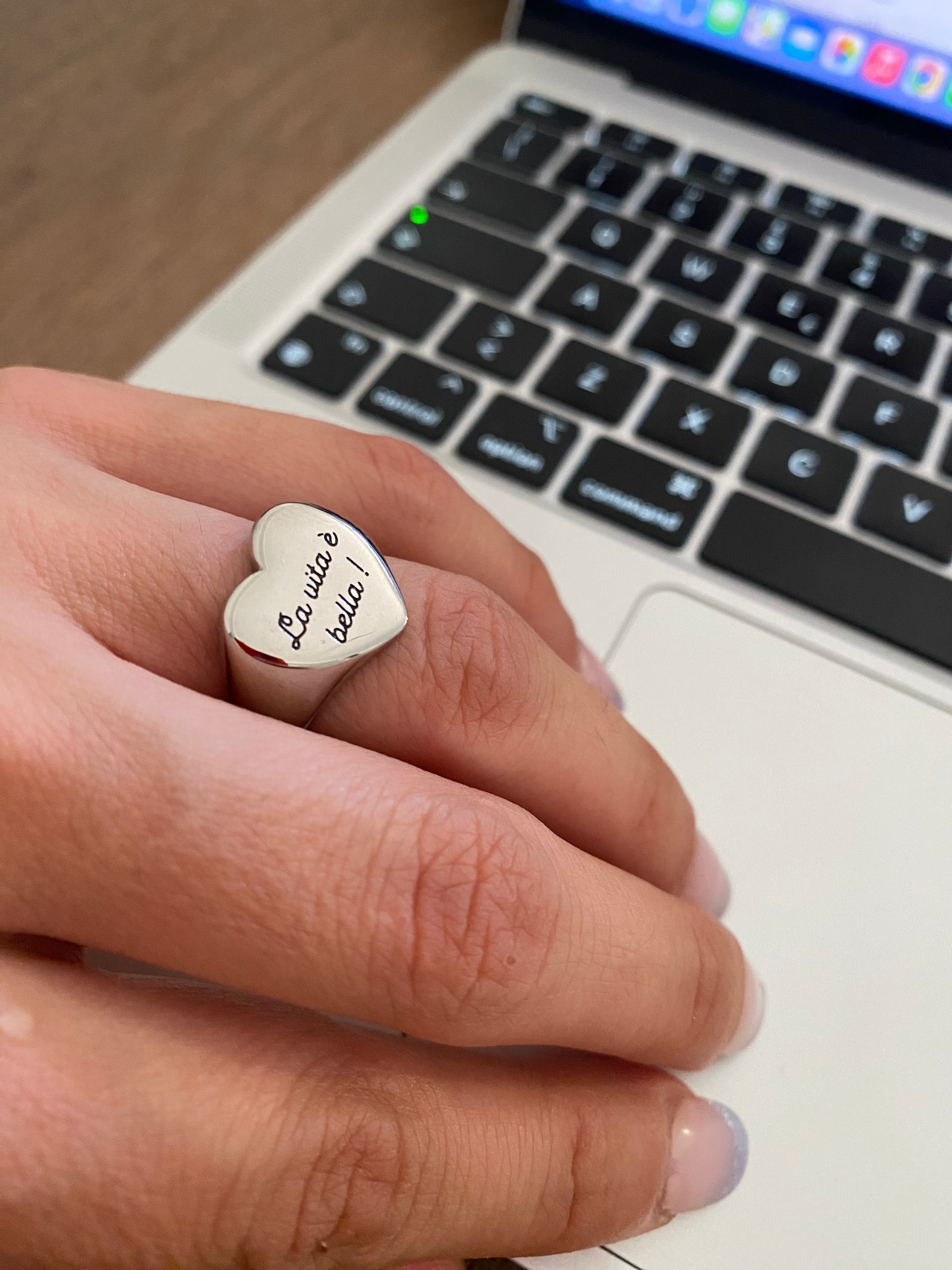 Scopri l’eleganza senza compromessi con l’anello MUPAJI nickel free a forma di cuore, impreziosito dalla delicata scritta "La vita è bella". Perfetto per chi cerca uno stile raffinato e sicuro, questo anello unisce design romantico e comfort, ideale da indossare ogni giorno senza rischi di allergie. Celebra la bellezza della vita con un gioiello che parla al cuore.
