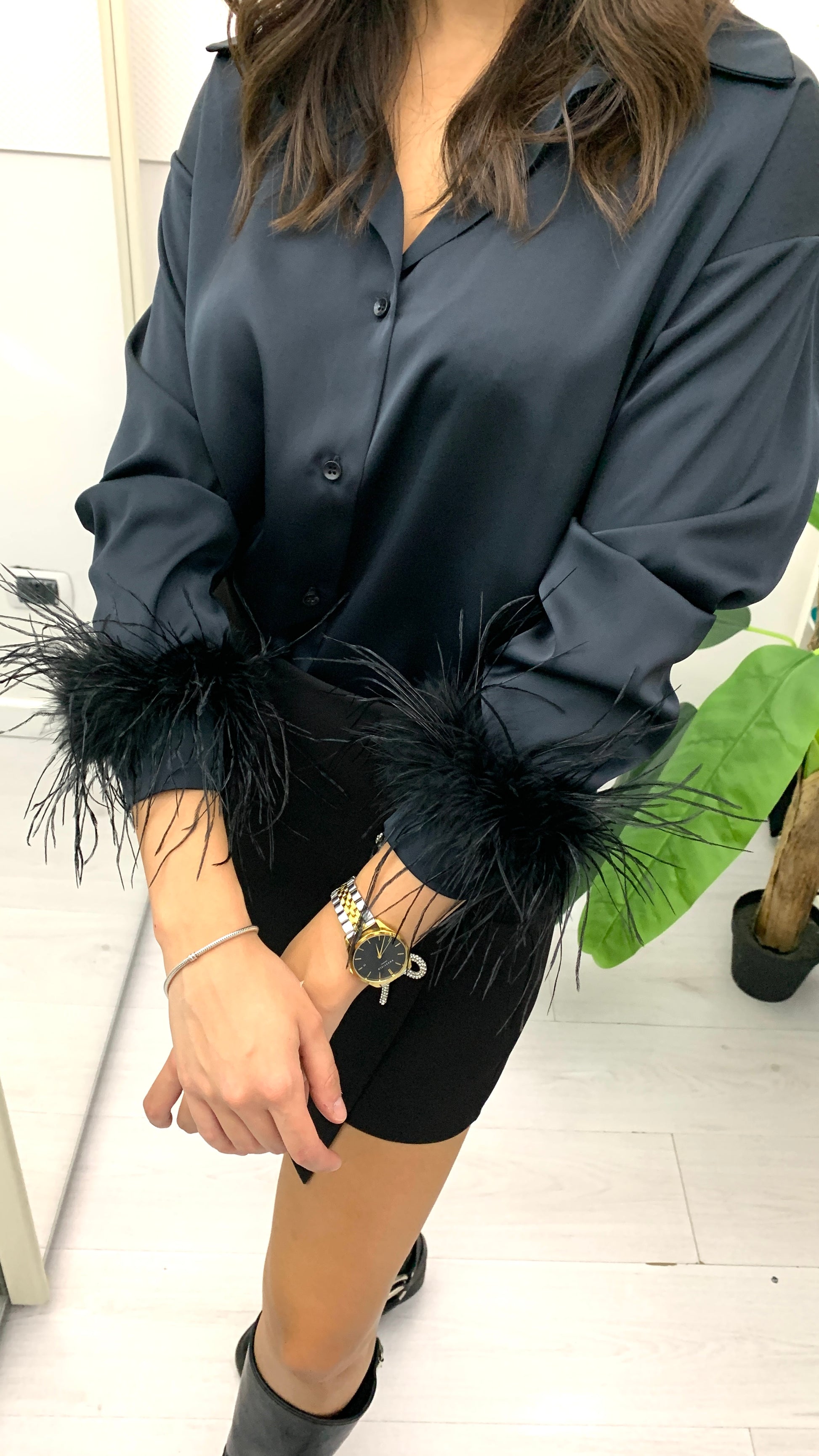 Questa camicia QUEGUAPA Nicole unisce l’eleganza del raso in seta opaca a dettagli sofisticati: le piume sui polsi aggiungono un tocco distintivo e raffinato. La vestibilità morbida garantisce comfort senza rinunciare a uno stile impeccabile, perfetta per chi cerca un capo versatile e di classe.
