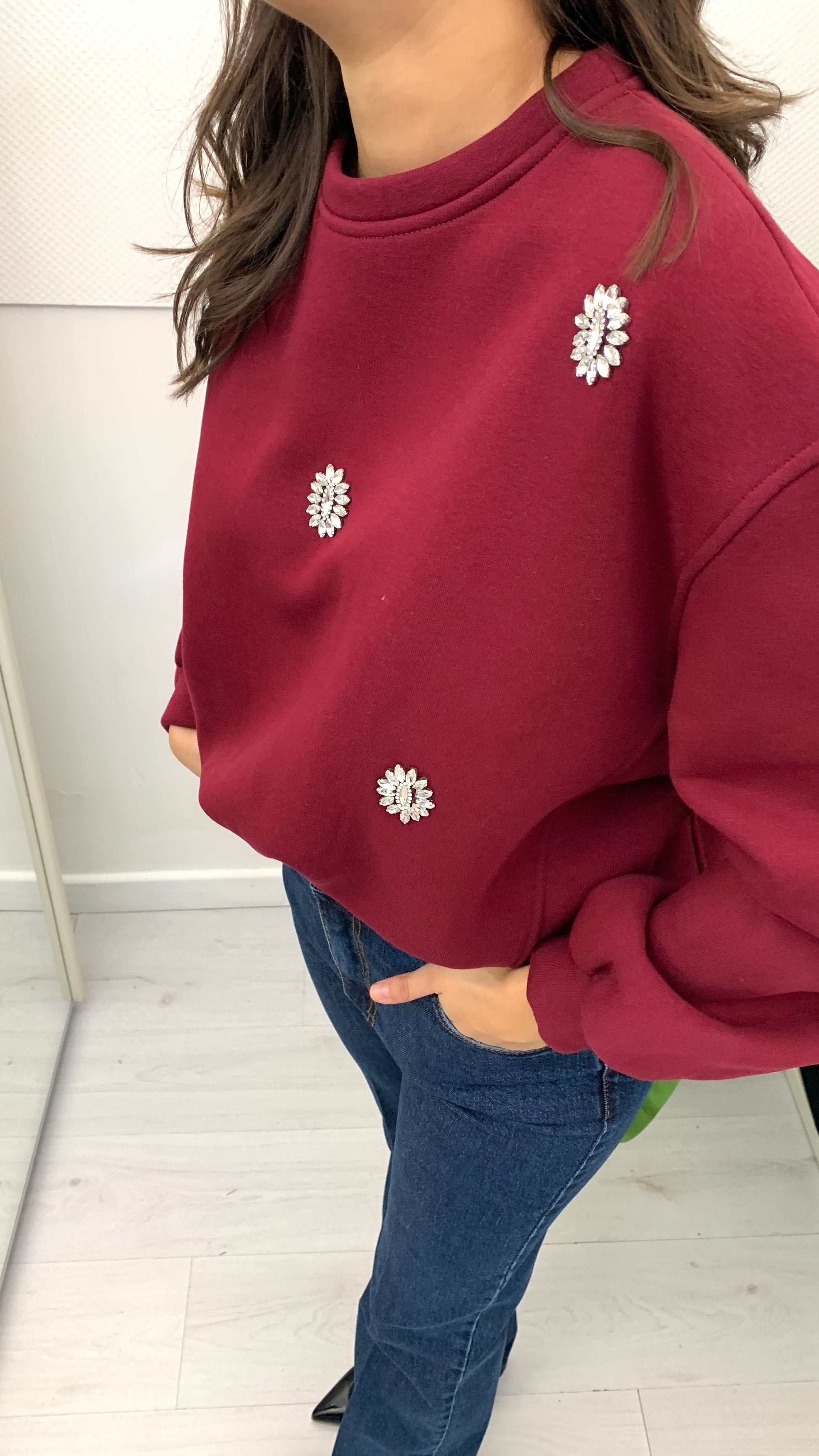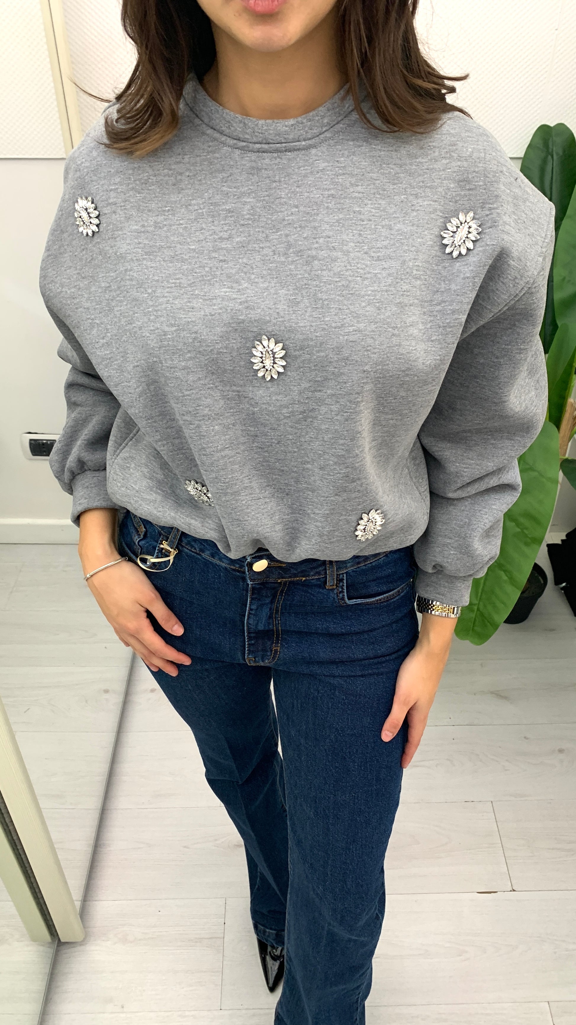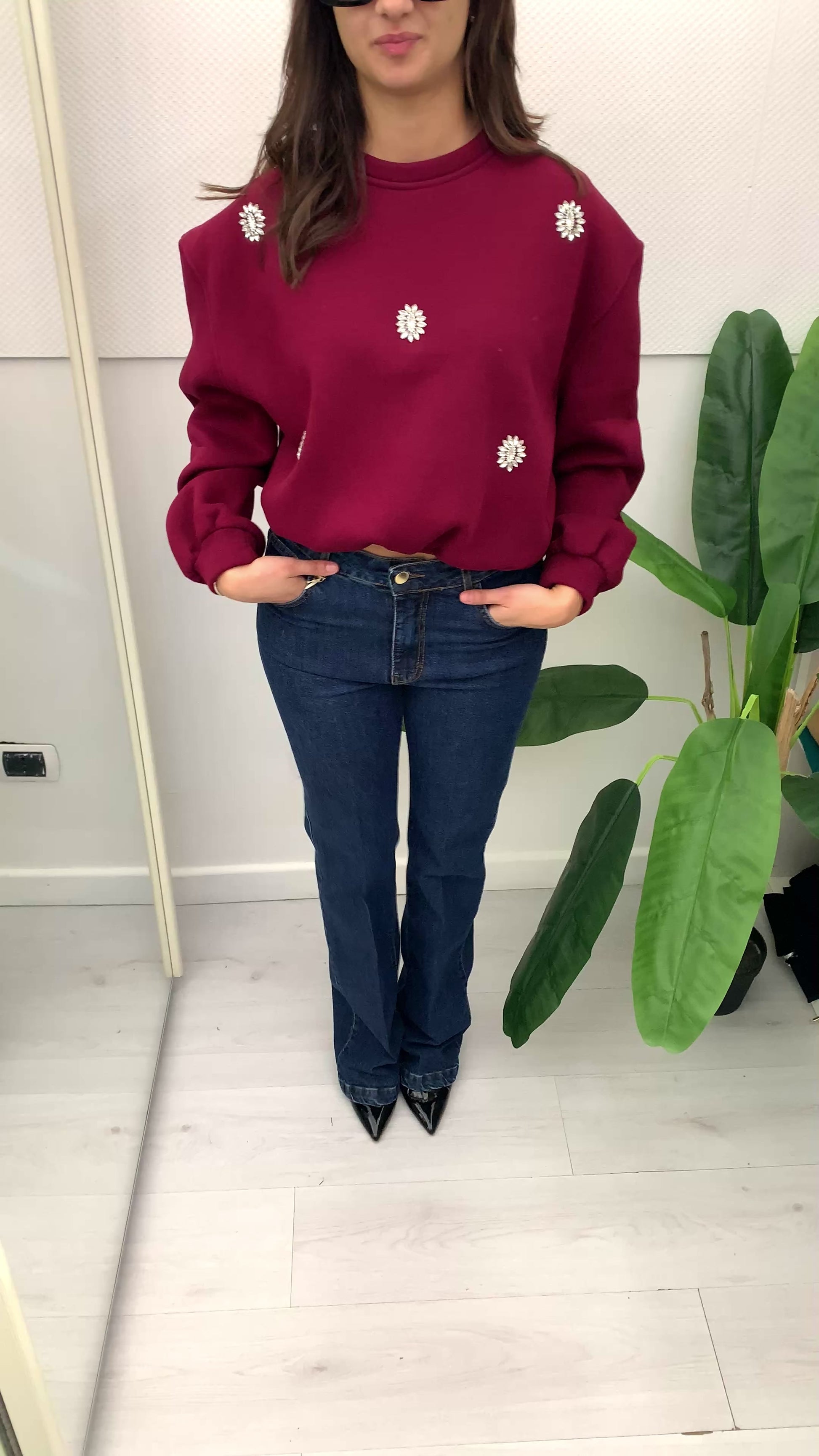 La felpa QUEGUAPA Irene con applicazioni unisce morbidezza e calore, offrendo comfort elevato e uno stile raffinato grazie ai dettagli decorativi. Ideale per chi cerca un capo pratico e al contempo distintivo.