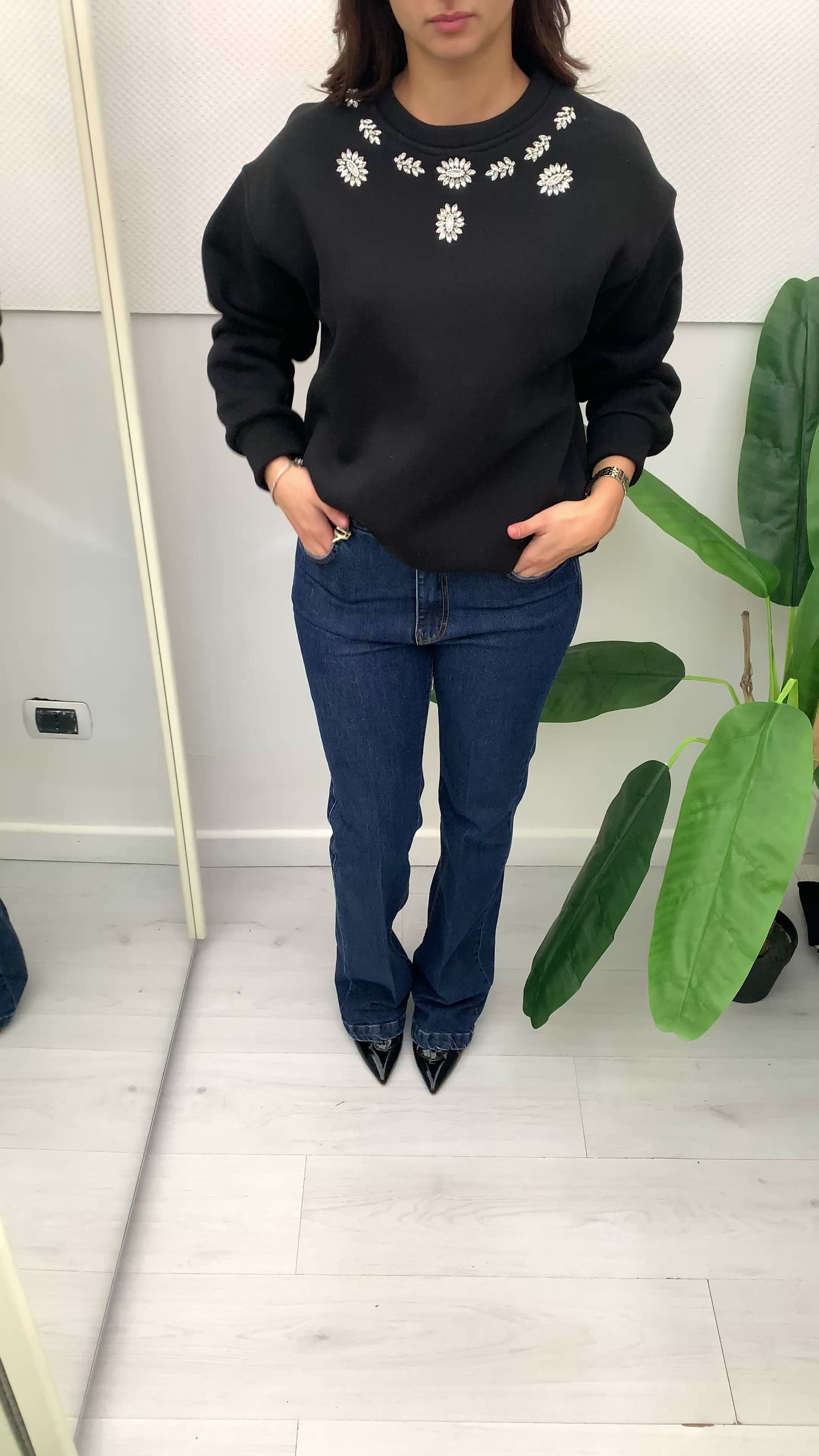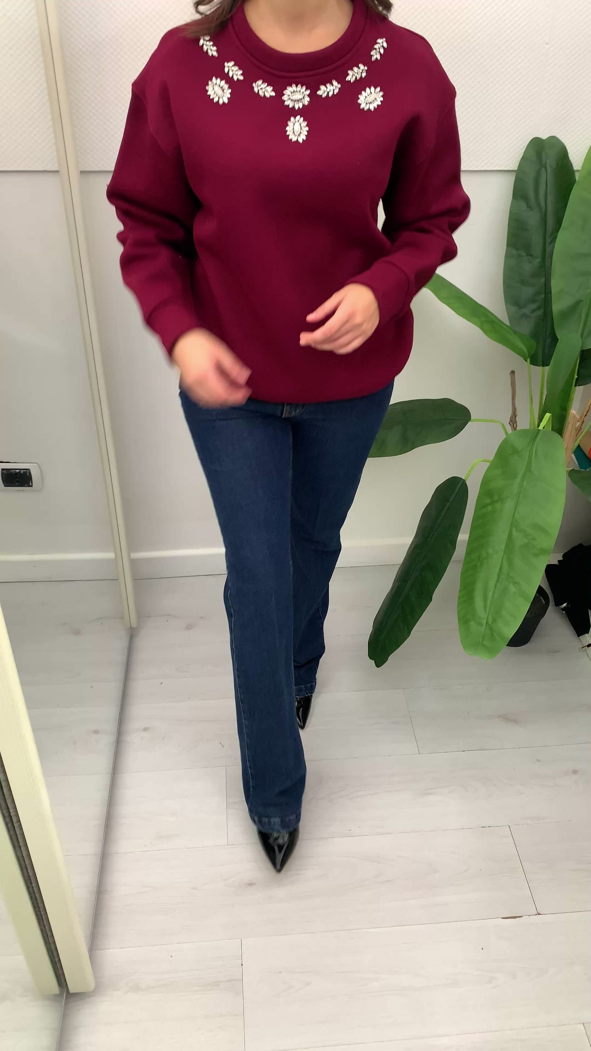 Questa felpa bordeaux QUEGUAPA Manuela, arricchita da eleganti applicazioni intorno al collo, offre un comfort superiore grazie al tessuto morbido e felpato, ideale per un look raffinato senza rinunciare al calore e alla comodità quotidiana.