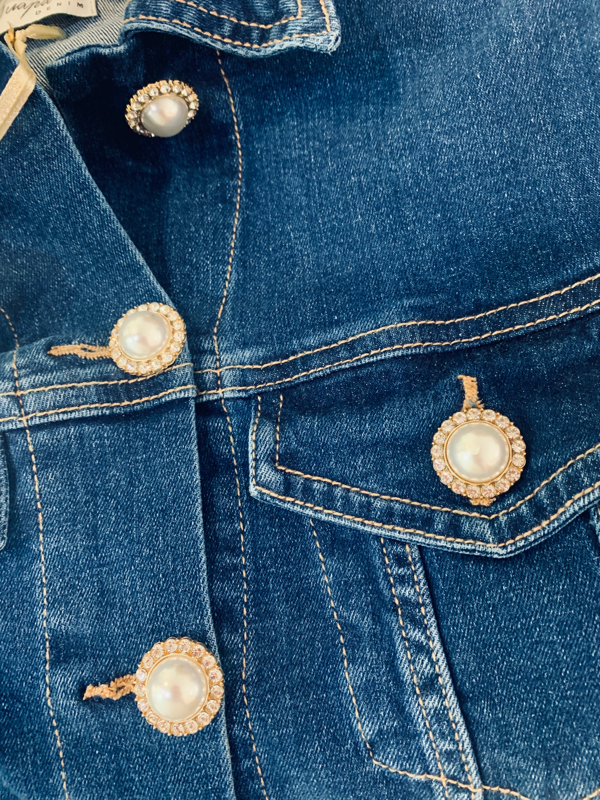 QUEGUAPA Giubbino Isla in Jeans con Bottoni in Perla