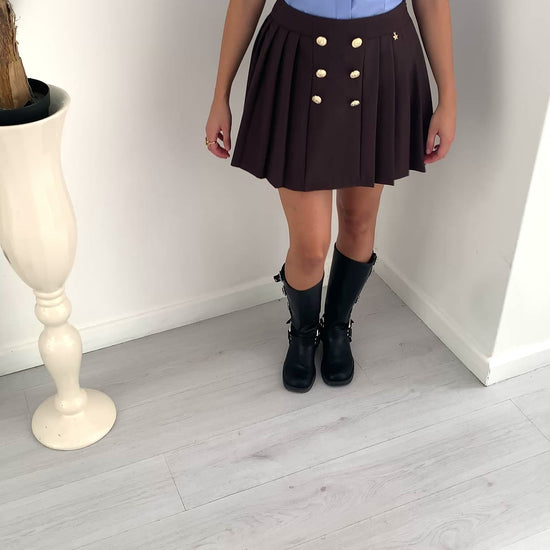 QUEGUAPA Gonna Desirè a Pieghe con Bottoni