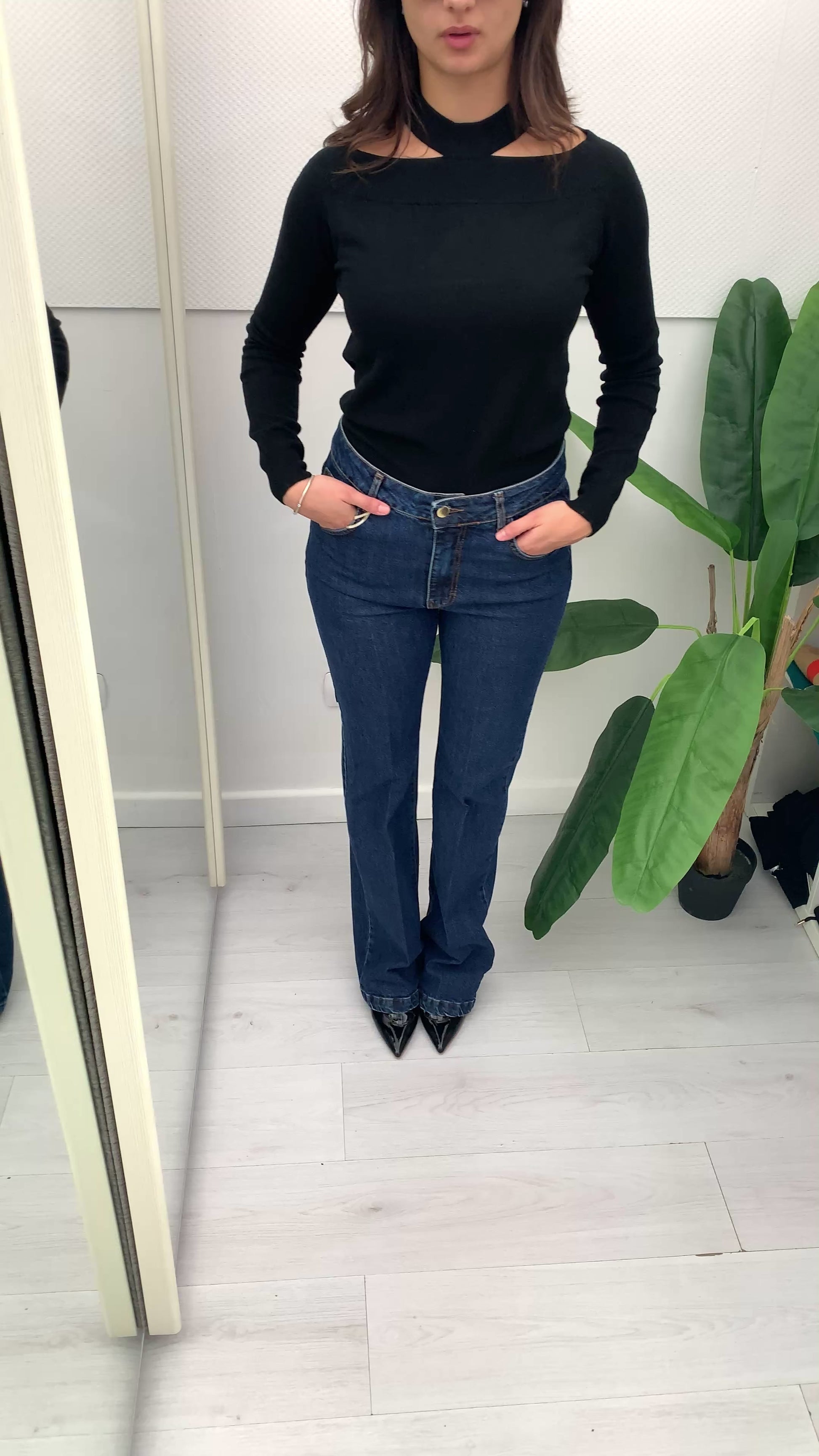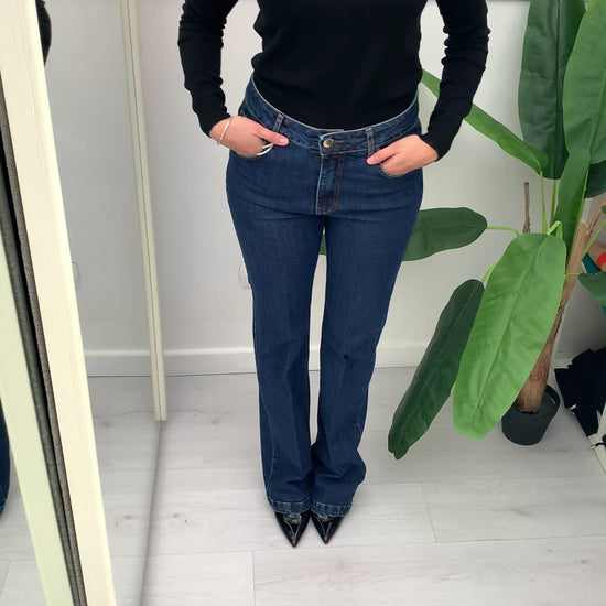I jeans Isabella Stretta a Zampa uniscono stile vintage e dettagli moderni. Il taglio a zampa slancia la gamba, mentre la catena applicata sul taschino posteriore aggiunge un tocco di originalità e carattere, perfetto per chi cerca un capo distintivo e di tendenza. Realizzati con materiali di qualità, offrono comfort e resistenza per un look sempre impeccabile.