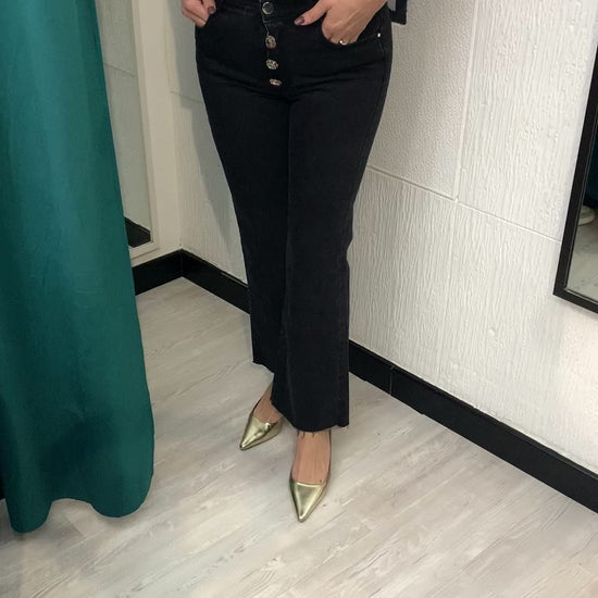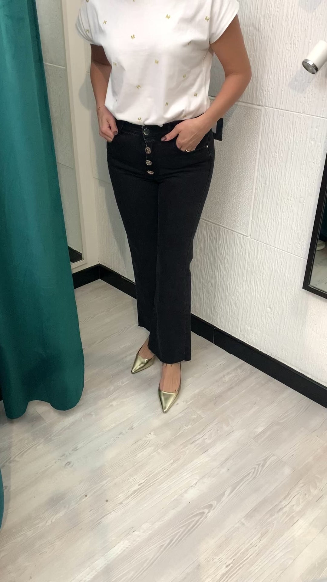 Jeans Sofia della linea Queguapa non passa inosservato: cotone morbido e avvolgente sono il compromesso perfetto tra comodità e stile. I bottoni gioiello aggiungono quel tocco di brillantezza che trasforma ogni movimento in una piccola dichiarazione di eleganza. Che tu li indossi con una t-shirt basic o un top più elaborato, questi jeans sanno come farsi notare senza gridare. Comfort che non scende a compromessi, dettagli che parlano da soli.