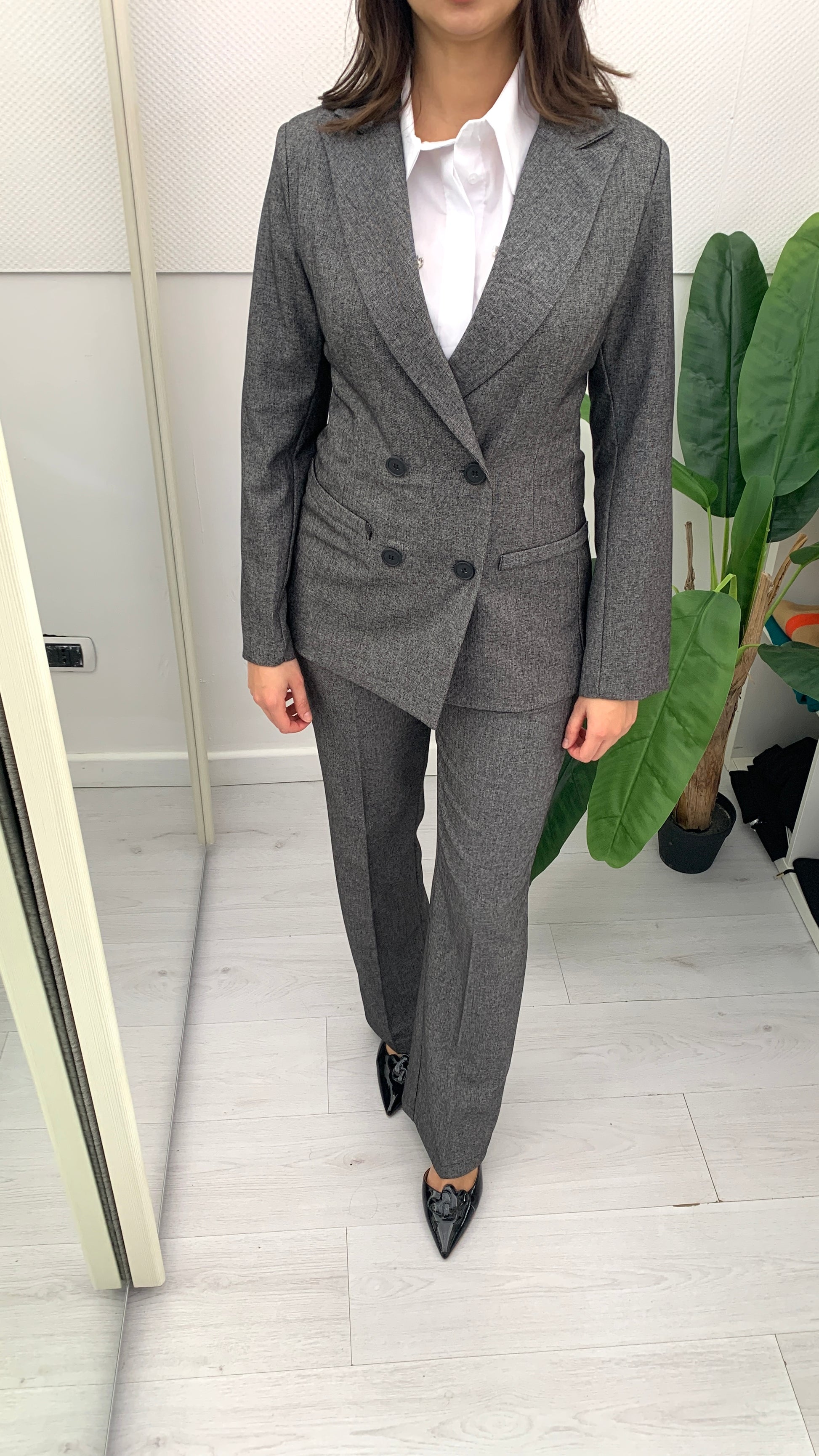 Il tailleur QUEGUAPA Ester unisce eleganza e versatilità con pantalone, gilet e giacca grigia, ideali per un look professionale e raffinato. Realizzato con materiali di qualità, offre una vestibilità impeccabile che valorizza la silhouette, perfetto per chi cerca stile e comfort durante le giornate lavorative o eventi formali.
